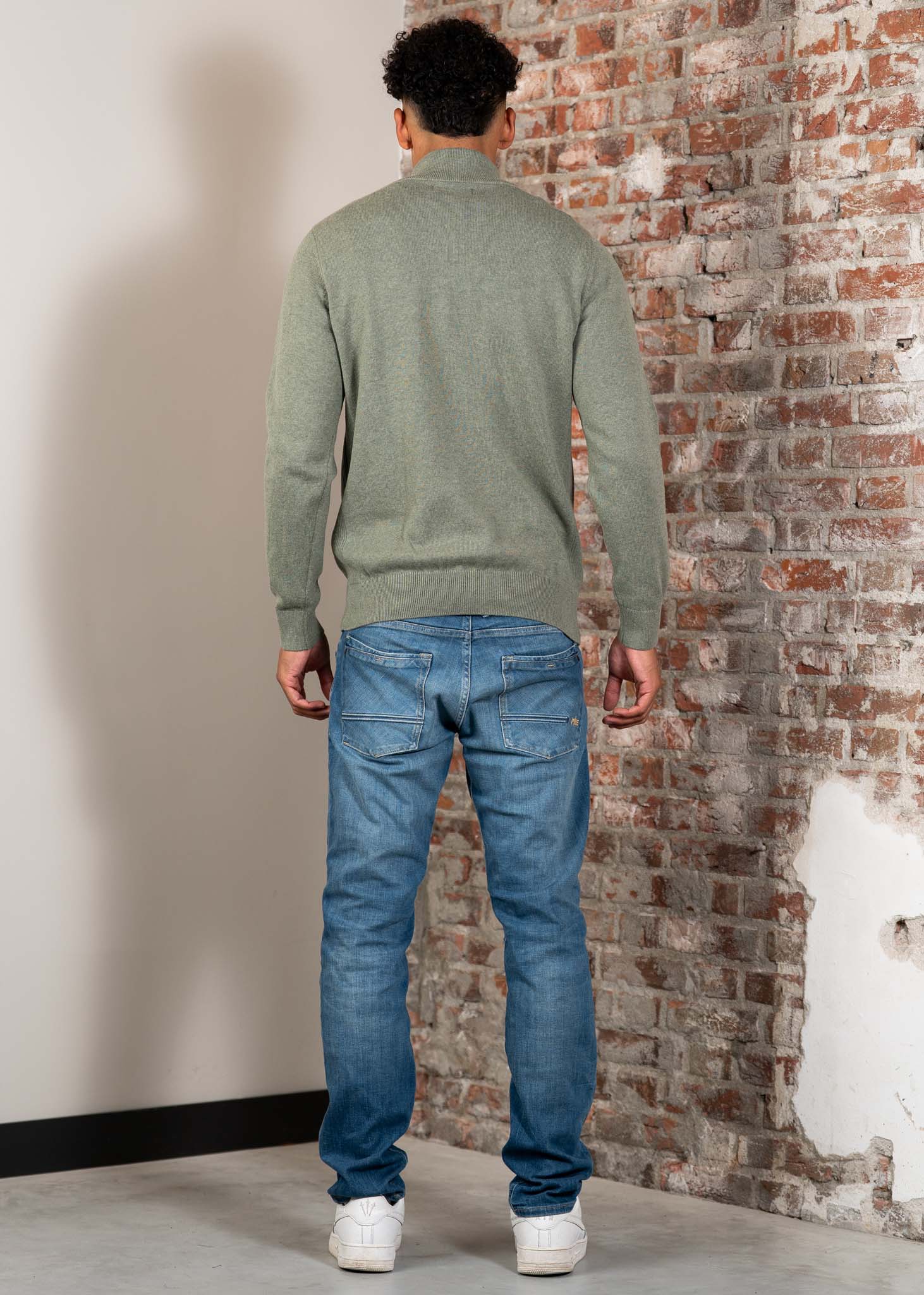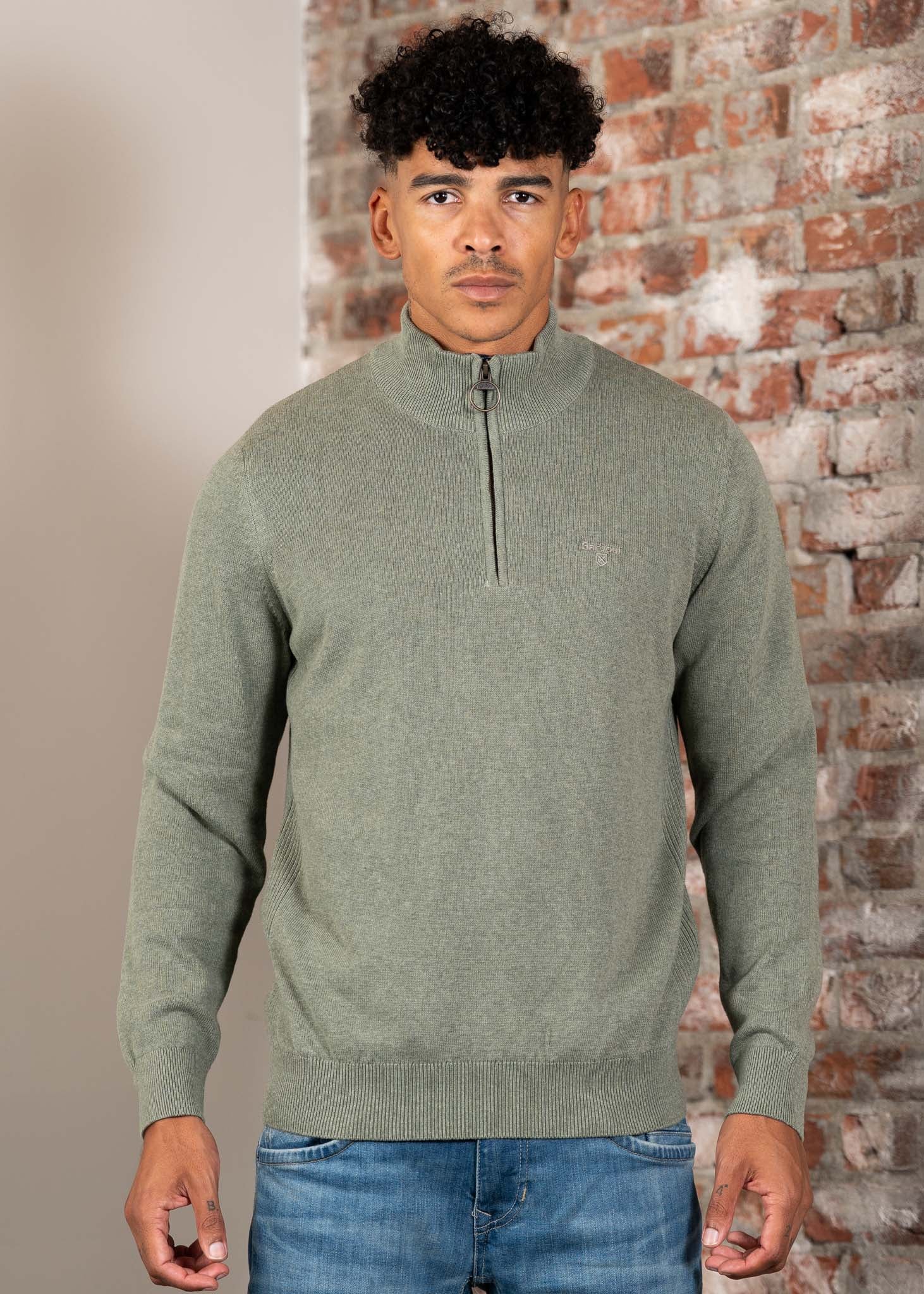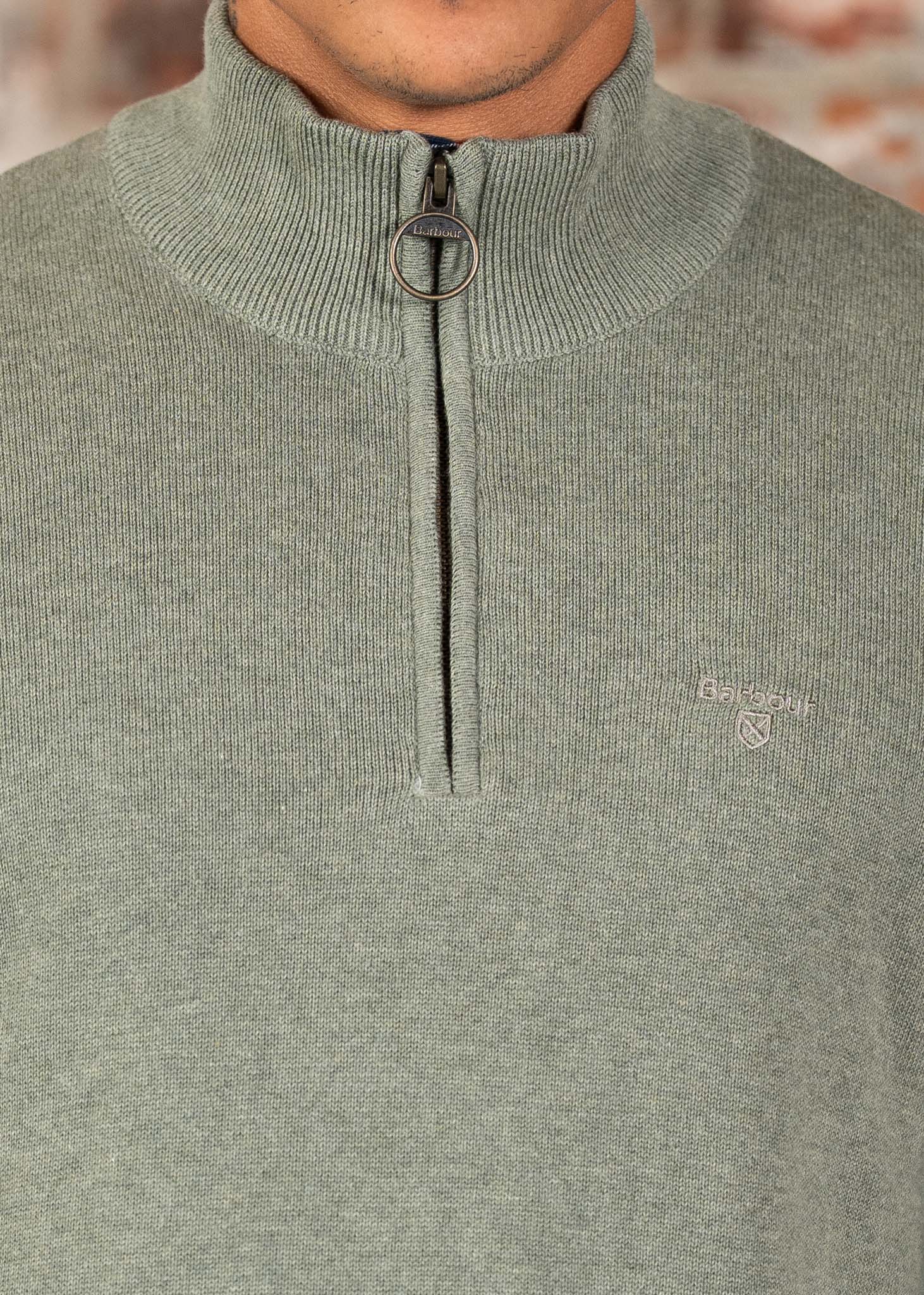 Cotton half zip knitted jumper - thyme