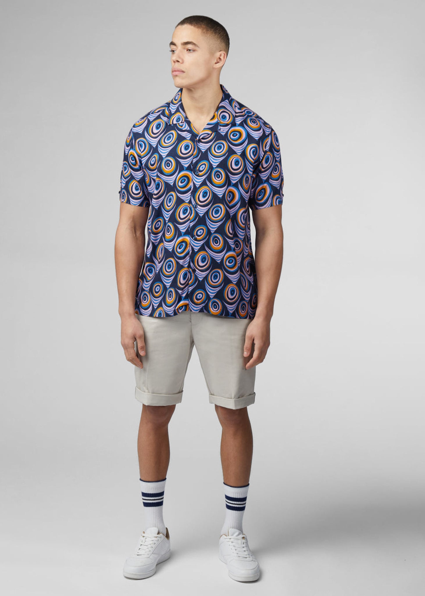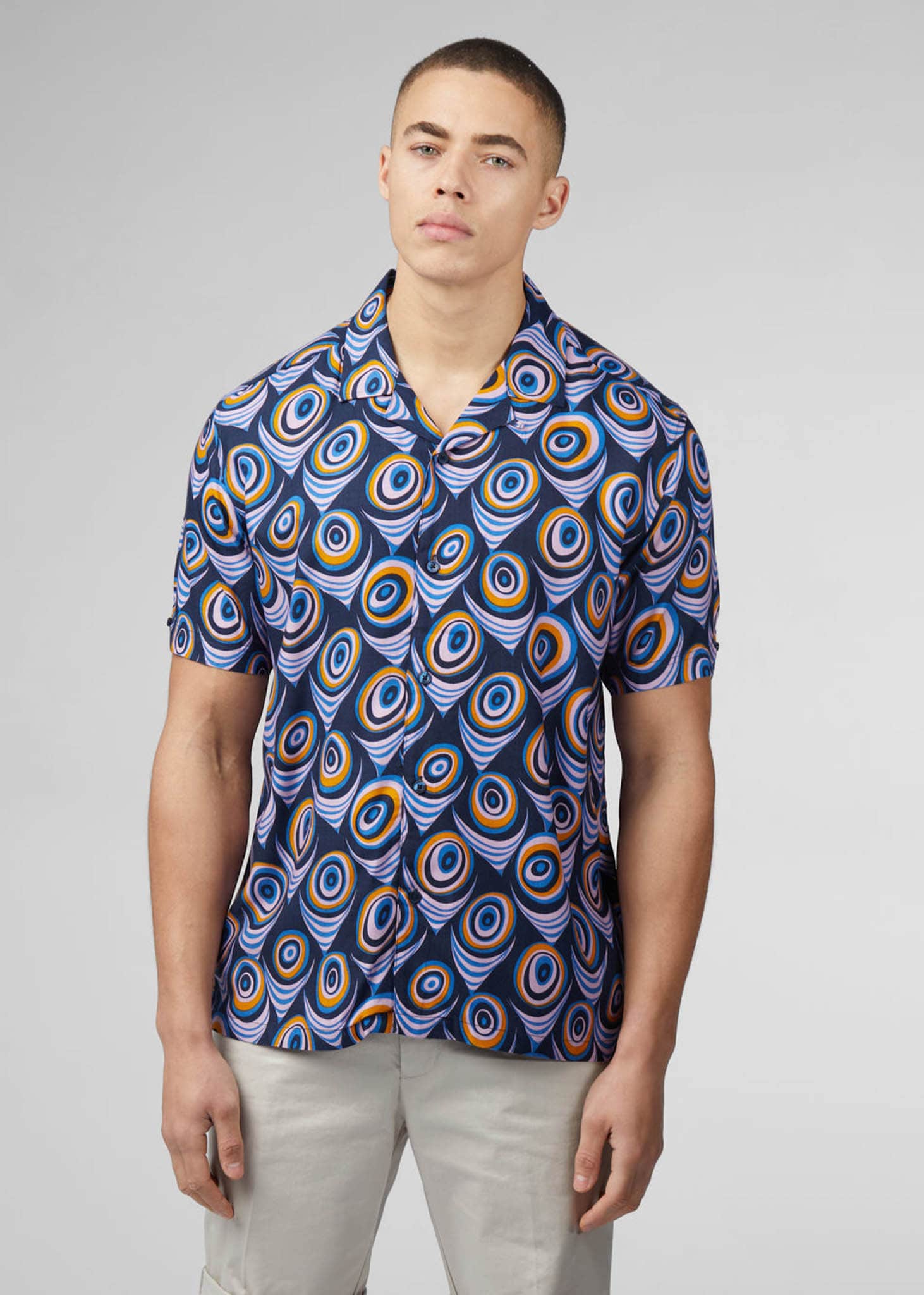 Upgrade je garderobe met een vleugje retroflair met het Ben Sherman Psychedelic Swirl Print Shirt. Dit opvallende kledingstuk heeft een levendig psychedelisch wervelontwerp, perfect voor degenen die zich graag onderscheiden van de massa.