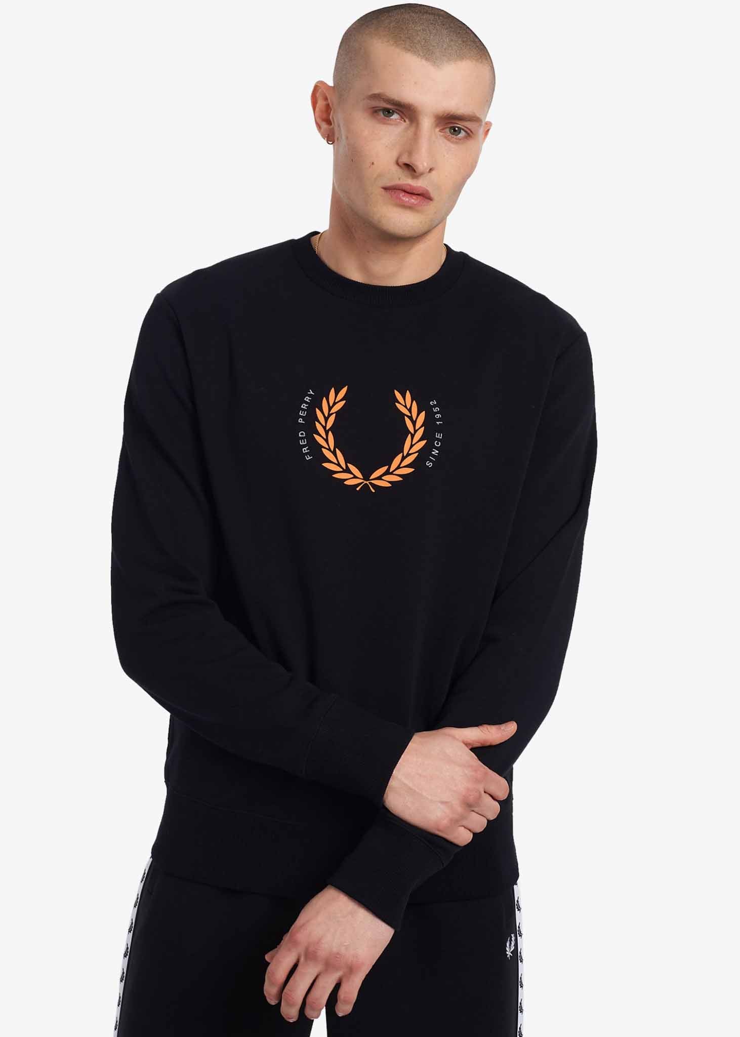 Dit is dé trui die je wil hebben voor de koude dagen. Het Laurel Wreath Sweatshirt van Fred Perry geeft je gegarandeerd de perfecte hoeveelheid warmte. De manchetten, kraag en zoom zijn geribbeld, wat de trui extra uitstraling geeft. Maar de echte eyecatcher is de print aan de voorzijde. Deze is opvallend, maar toch subtiel. Kortom: een top item.