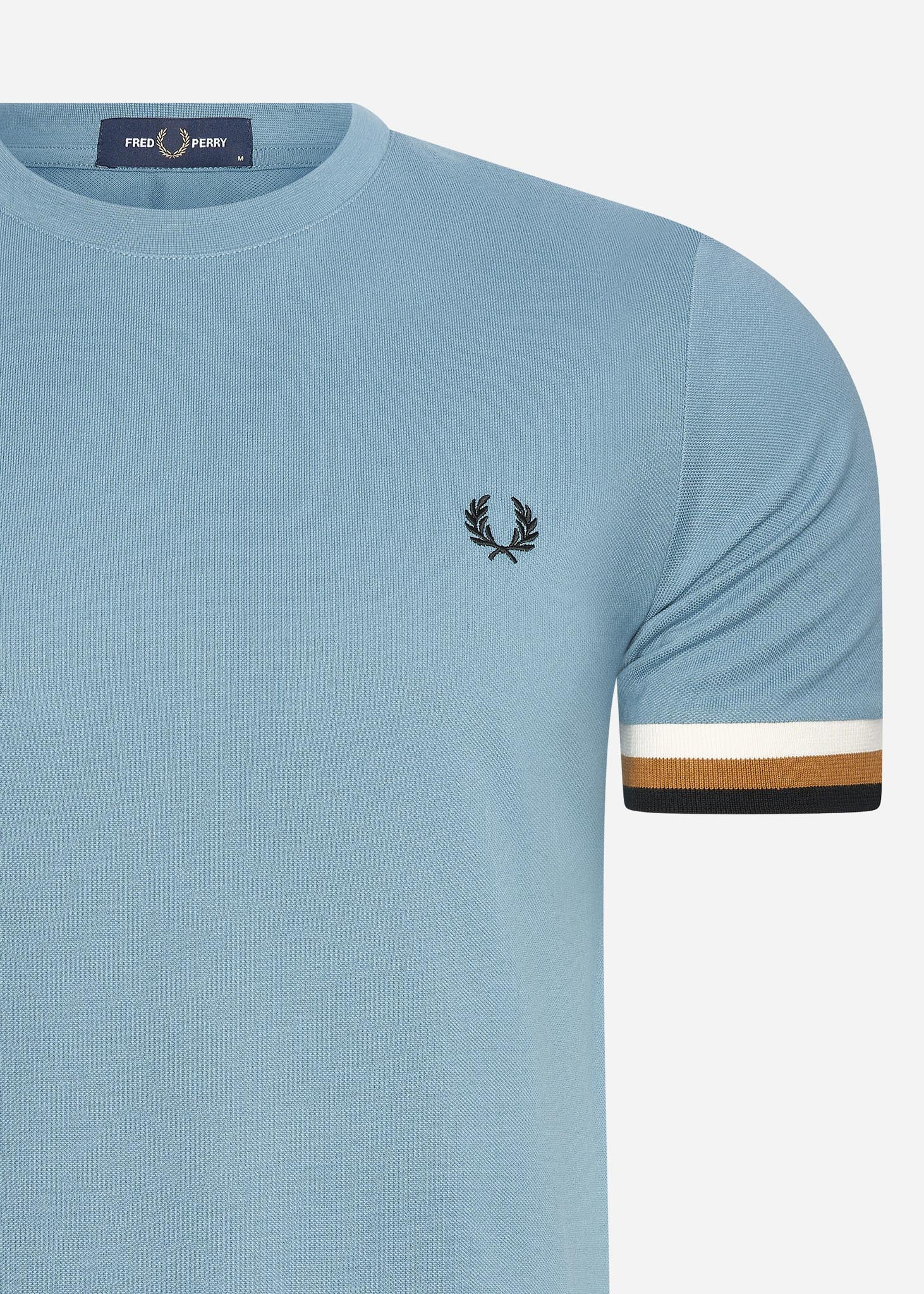 Striped cuff pique t-shirt - ash blue
