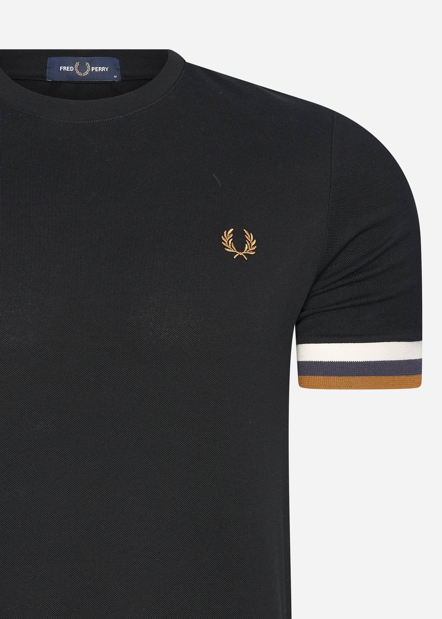 Striped cuff pique t-shirt - black