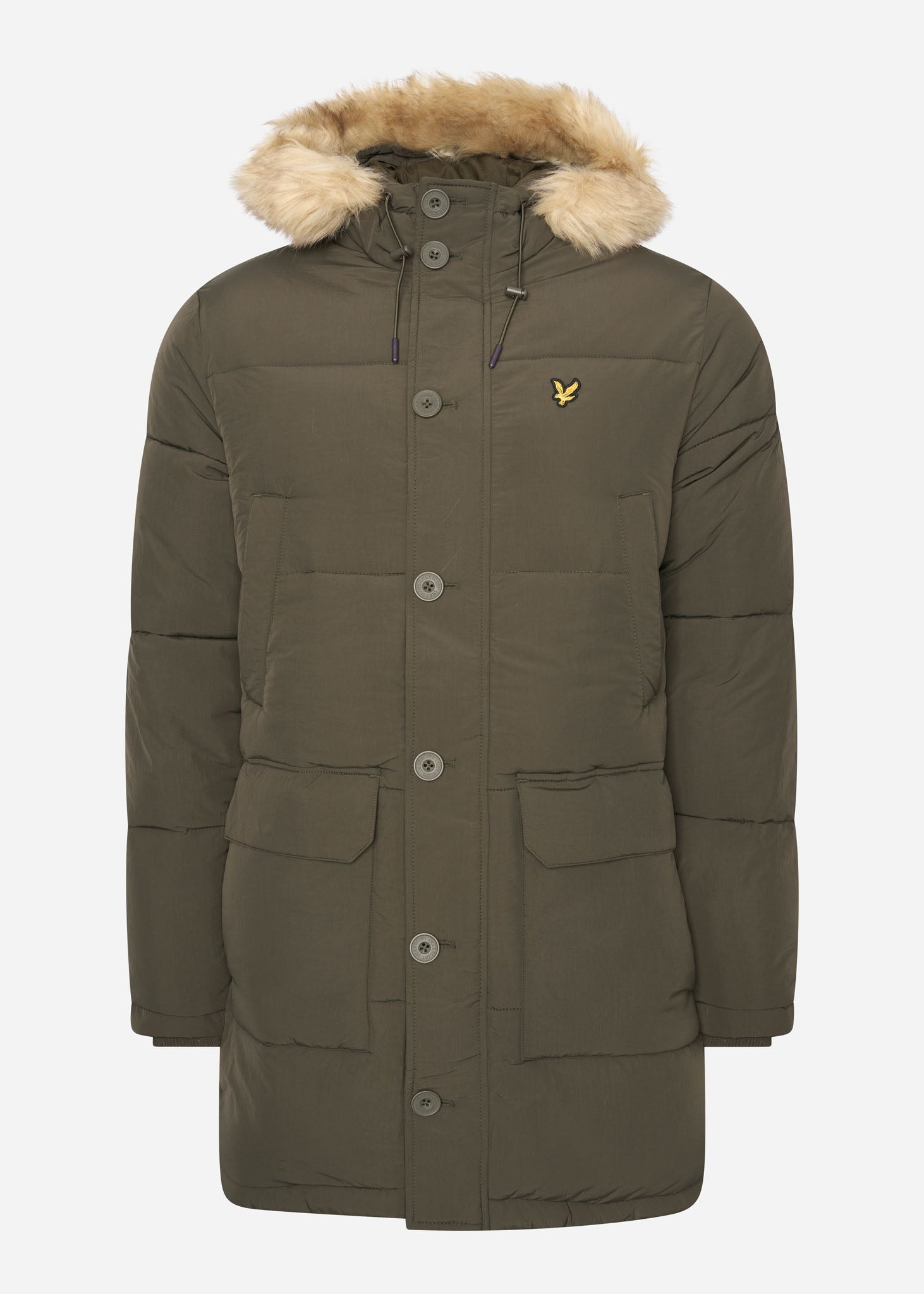 Het stevige, lange pufferjack van Lyle & Scott combineert de warmte van het pufferjack met de vintage uitstraling van de parka. Geniet van de warmte en zie er stijlvol uit. De wattering en nepbontkraag maken dit jack een van de beste herenjacks voor in de winter. Helemaal compleet met ouderwetse knoopsluiting, verstelbare capuchon opgestikte zakken en handwarmende zakken. Uiteraard prijkt de iconische adelaar op de borst. Geweldig, toch?
