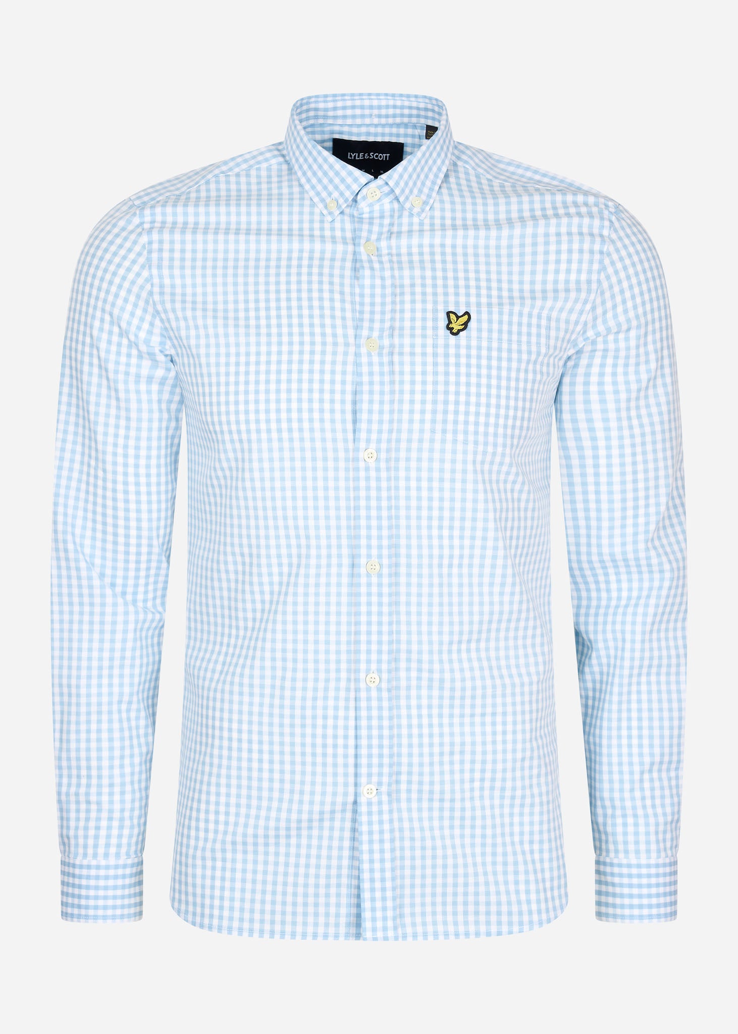 LS slim fit gingham shirt - light blue white