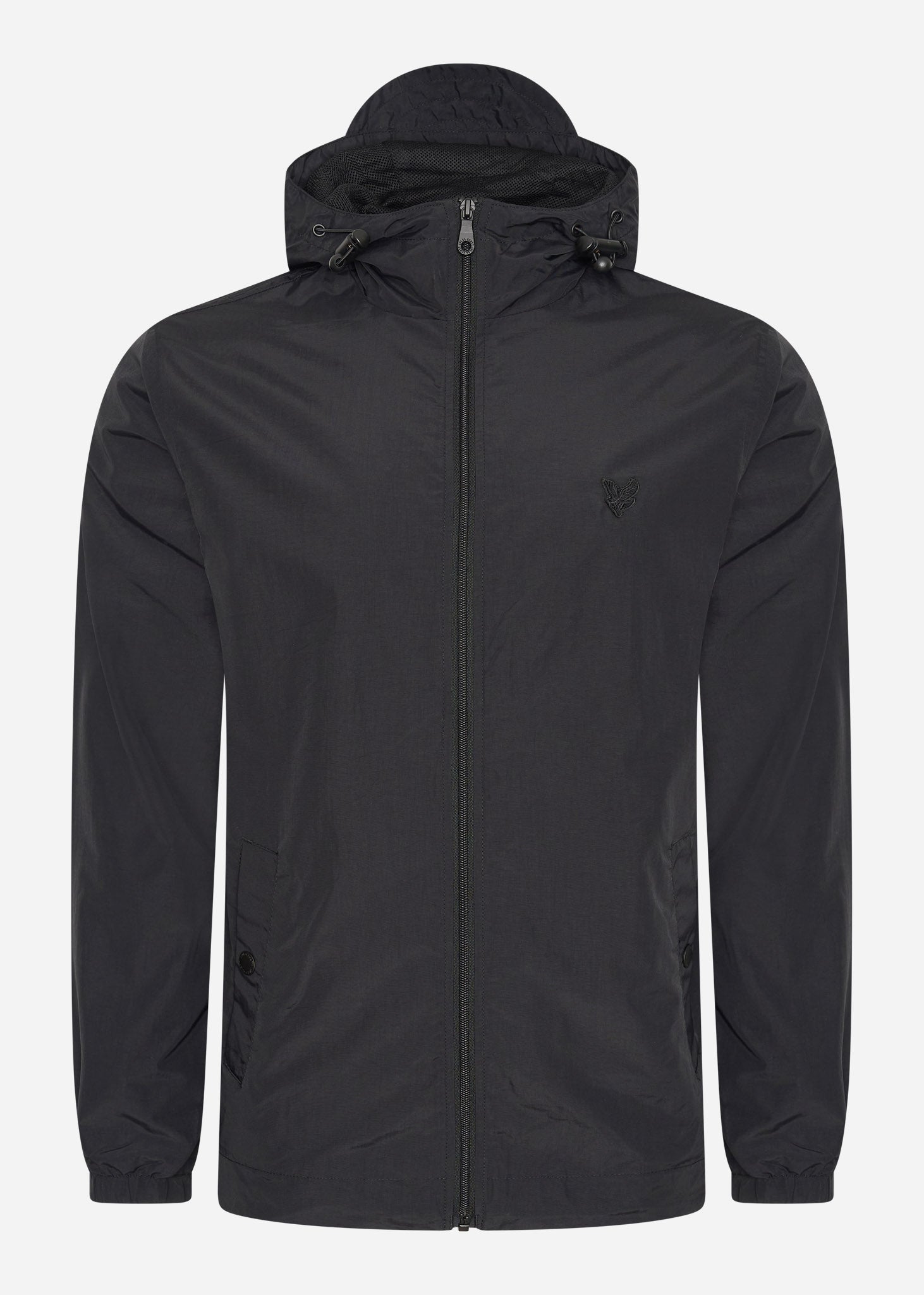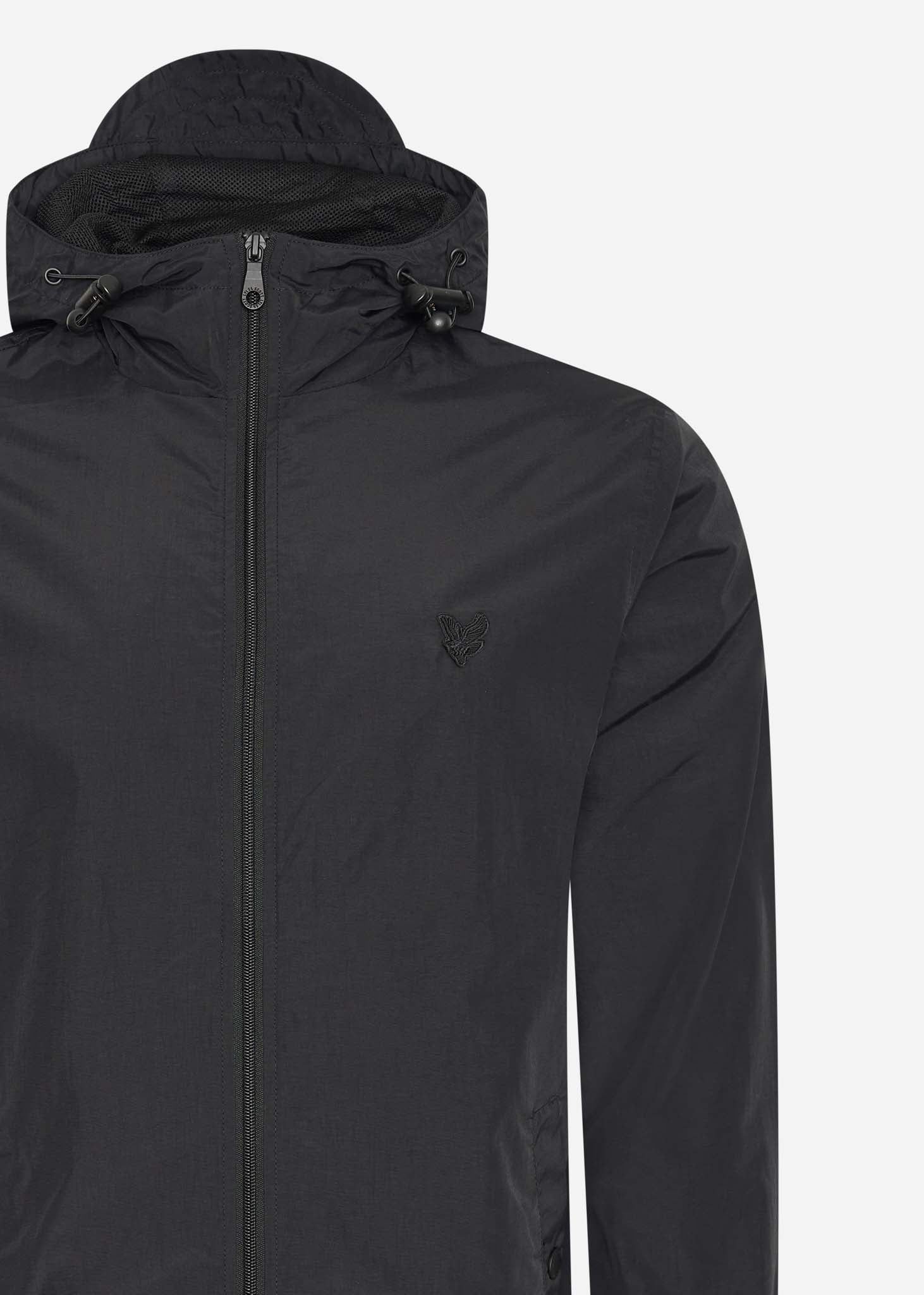 Tonal eagle zip through hooded jacket - jet black