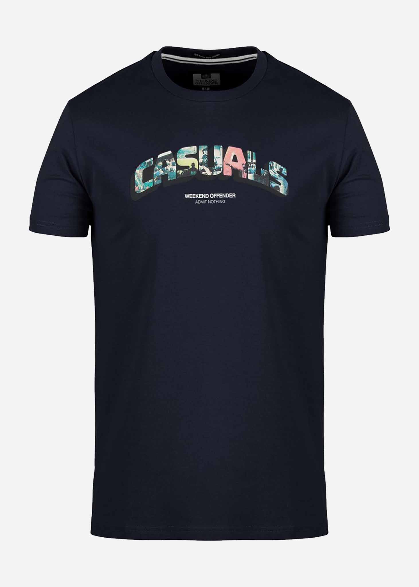 Het Saturday t-shirt is voorzien van een mooie, gedetailleerde print. Verschillende afbeeldingen gemaakt in stadions vormen samen het woord "casuals". Daaronder is het merklogo van Weekend Offender weergegeven. Dit is een t-shirt voor degenen die willen laten zien wie ze zijn. Uiteraard in de kwaliteit die we gewend zijn van Weekend Offender.