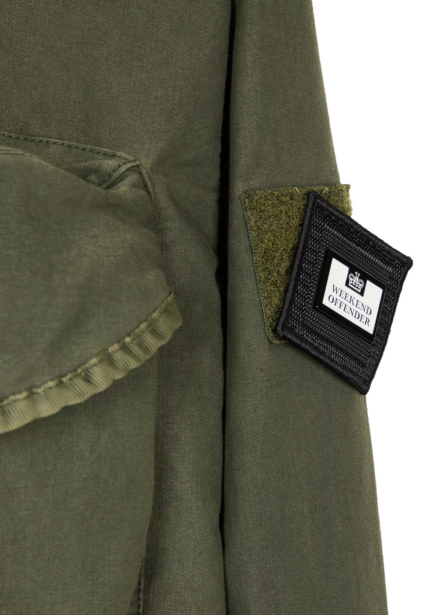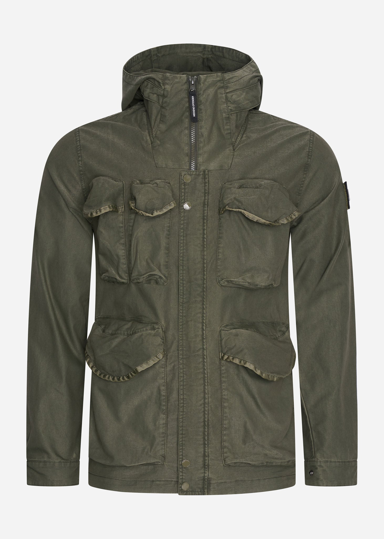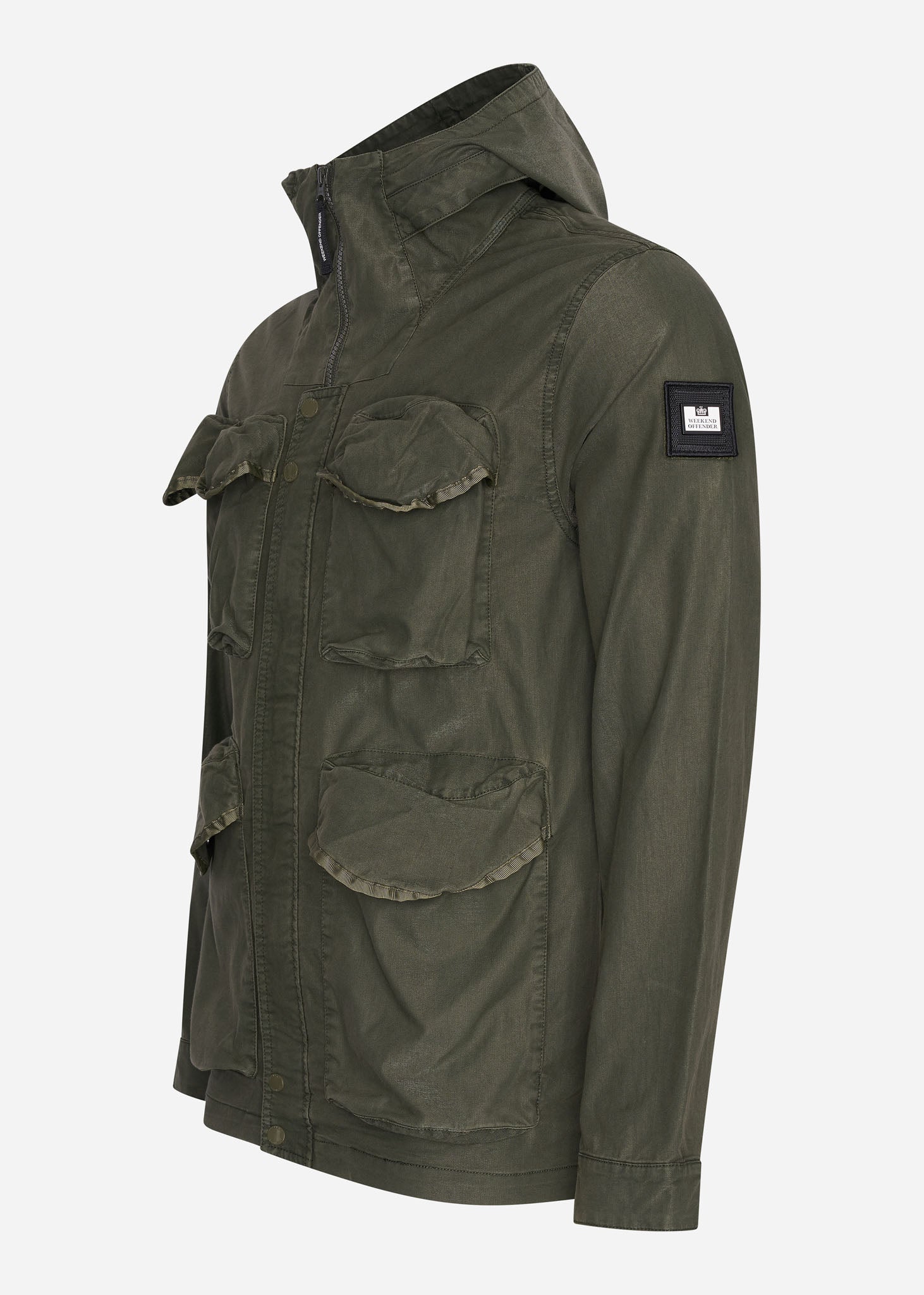 De Weekend Offender Cotoca jas is een bijzonder kledingstuk. Dankzij de 'garment dye' techniek heeft deze jas een unieke, vervaagde kleur. Verder is deze jas voorzien van meerdere 3D-zakken aan de voorzijde. Ook heeft deze jas steekzakken aan de zijkant. In de nek is een onzichtbare rits aangebracht, waar een bivakmuts is aangehecht. De afneembare Weekend Offender badge op de linkermouw is de kers op de taart.