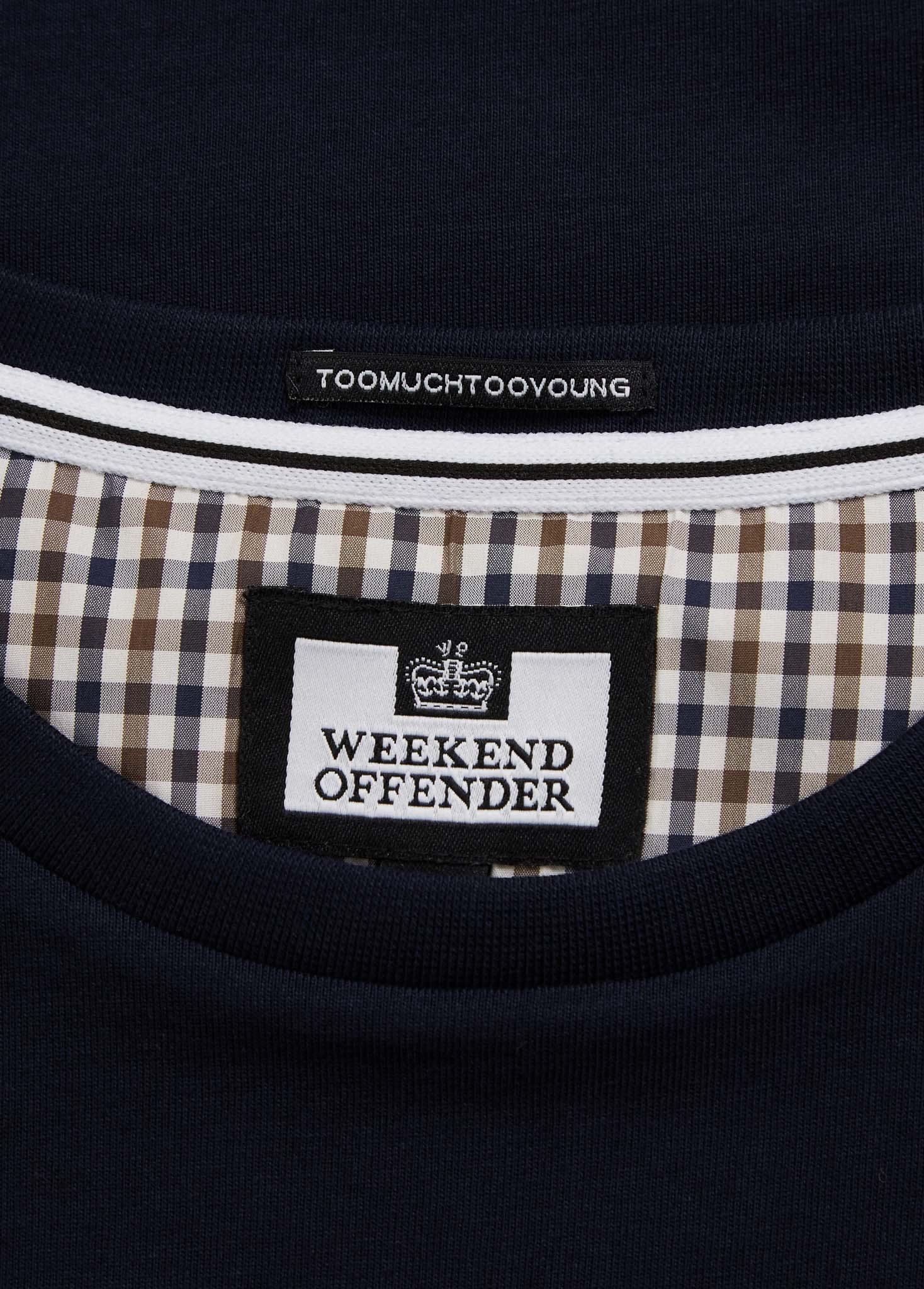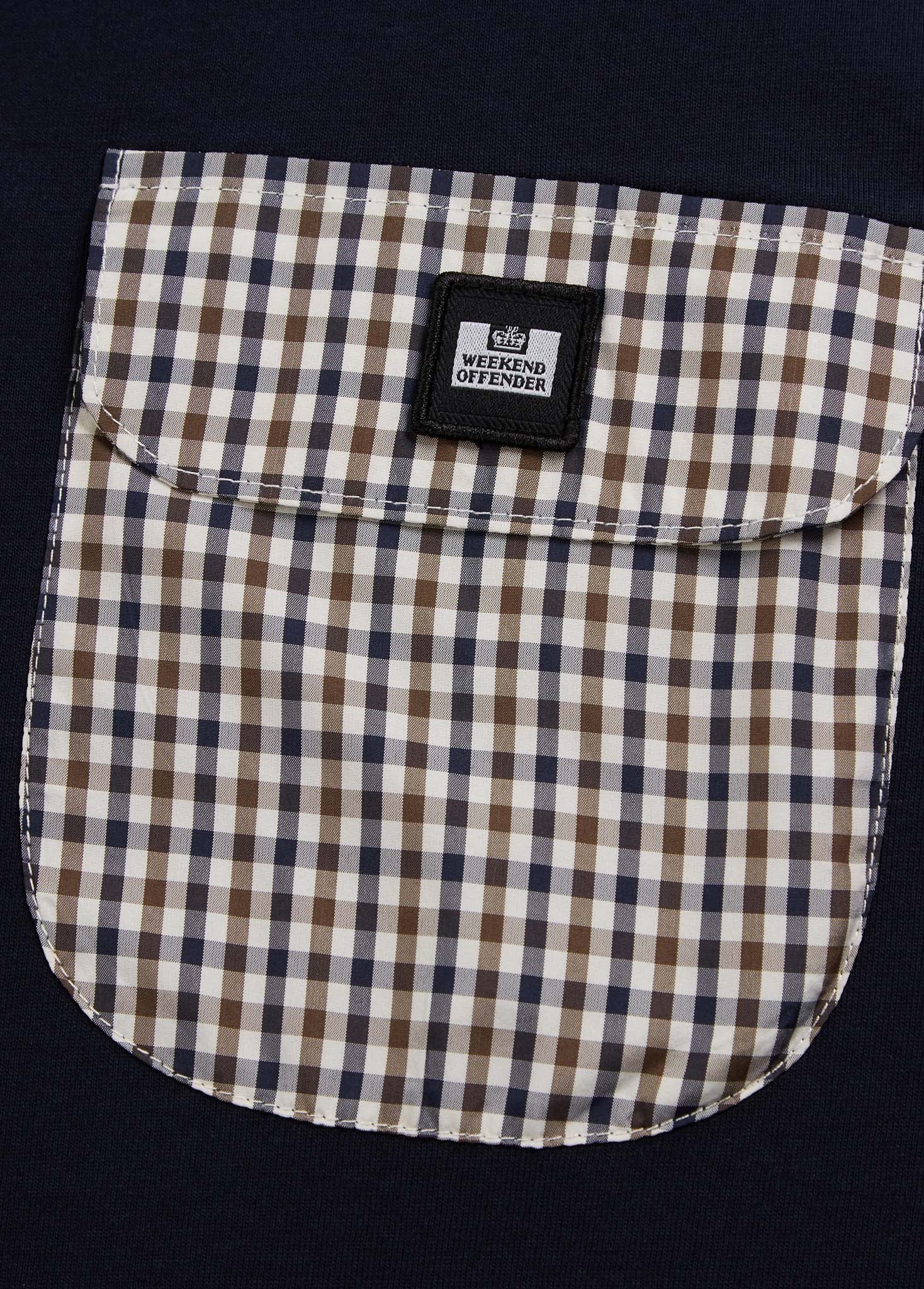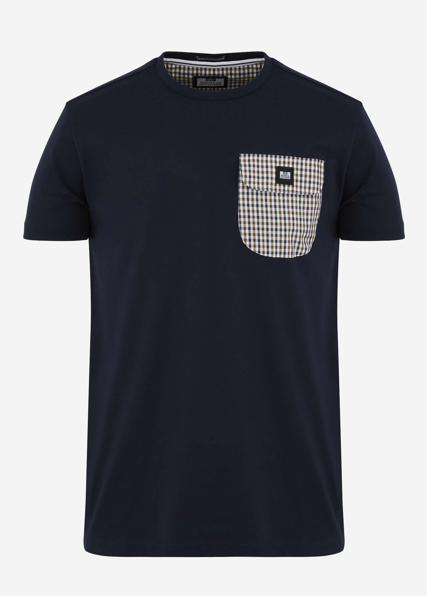 Dit t-shirt is uniek in zijn soort. Weekend Offender heeft een borstzak op het t-shirt verwerkt. Deze borstzak heeft een strak ruitenpatroon. Op de borstzak is tevens het logo van Weekend Offender verwerkt. Dit t-shirt is ook voorzien van een geribbelde hals.