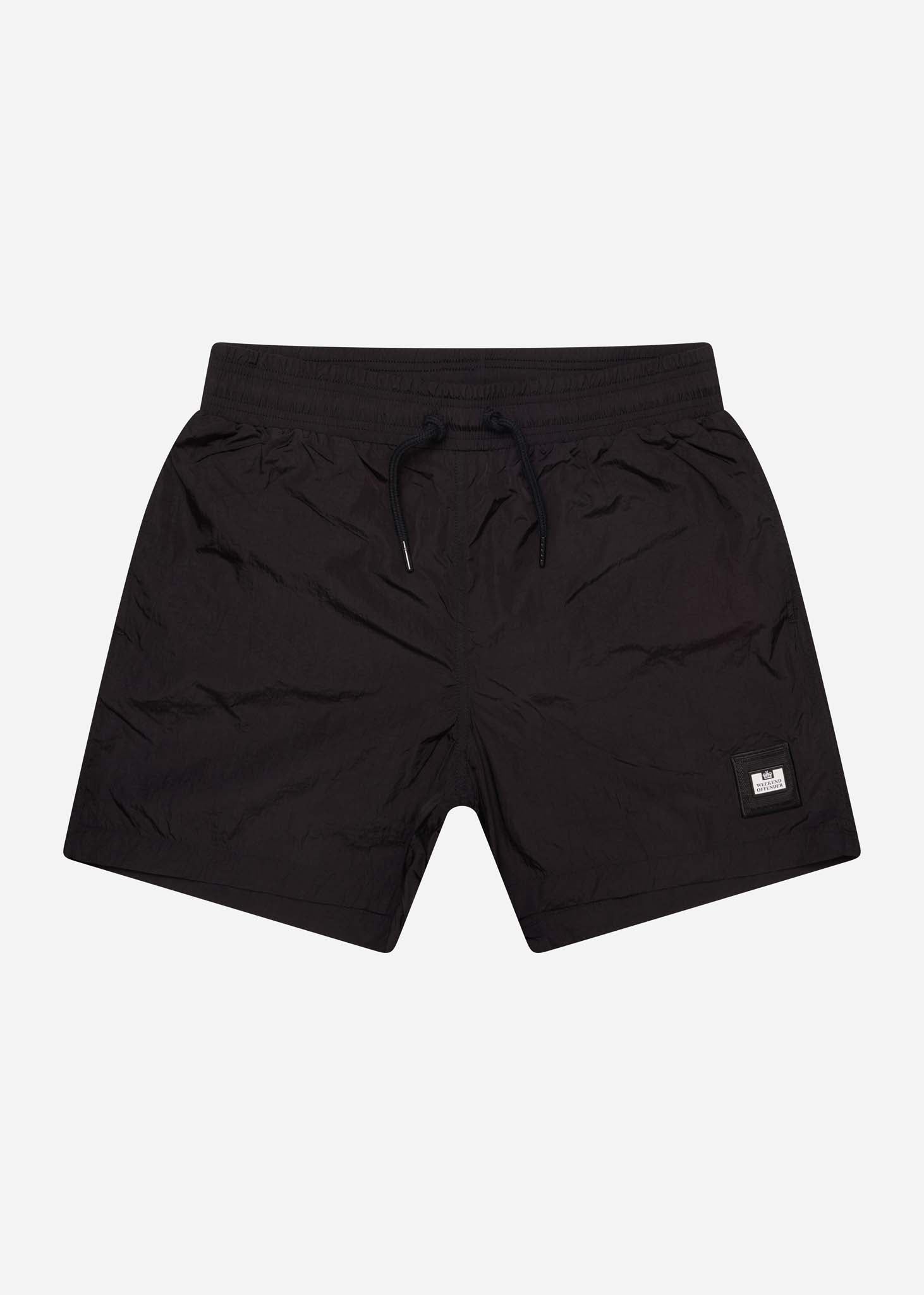 Deze zwembroek van Weekend Offender is onmisbaar bij het zwembad of de zee. Het Weekend Offender logo is uiteraard weergegeven op het linkerbeen. De zwembroek heeft handige zakken aan de zijkanten. Op de achterkant is ook een zak te vinden, deze is met klittenband te sluiten. Door het trekkoord aan de voorkant zal de zwembroek ook altijd lekker zitten.