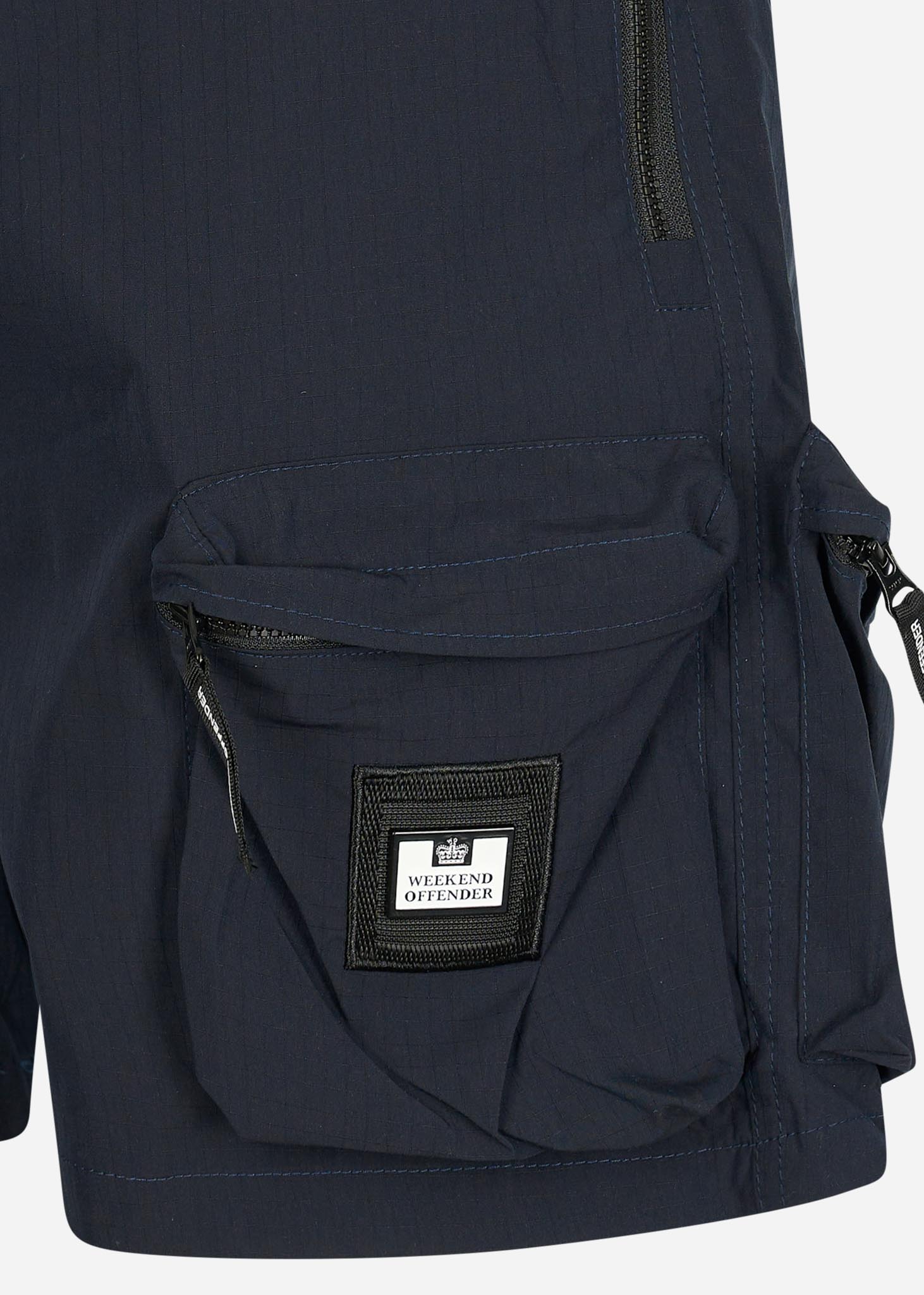 De Sunrise Hills van Weekend Offender is geen standaard korte broek. Deze broek is namelijk voorzien van twee 3D-zakken met ritssluiting aan de linkerkant. Op de zak aan de voorkant is tevens het logo van Weekend Offender weergegeven. Verder heeft deze broek ook zijzakken met ritssluiting en een achterzak. Ten slotte zal de broek altijd lekker zitten dankzij de elastische taille met trekkoorden.