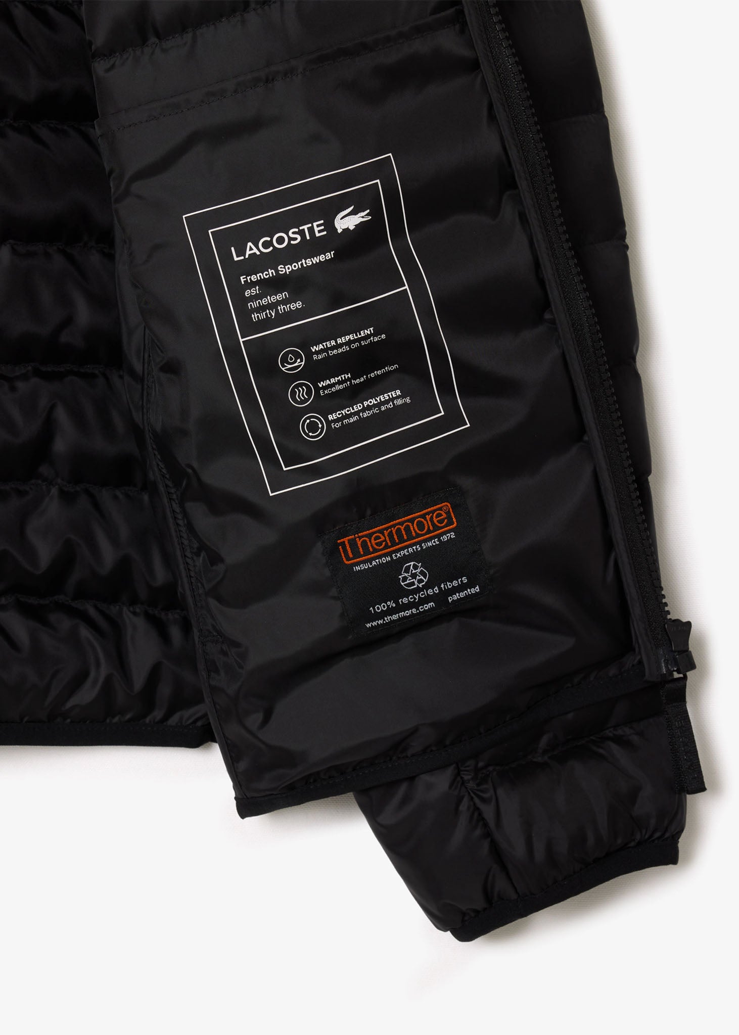 Dit populaire gewatteerde jack met capuchon van Lacoste combineert stijl met technische expertise. Het jack biedt optimale bescherming tegen de elementen dankzij een waterafstotende laag en innovatieve, lichtgewicht Thermore®-vulling. Met zijn veelzijdige en praktische ontwerp kan dit jack afzonderlijk of als extra laag onder een jas gedragen worden. Ideaal voor dagelijks gebruik in wisselende weersomstandigheden.