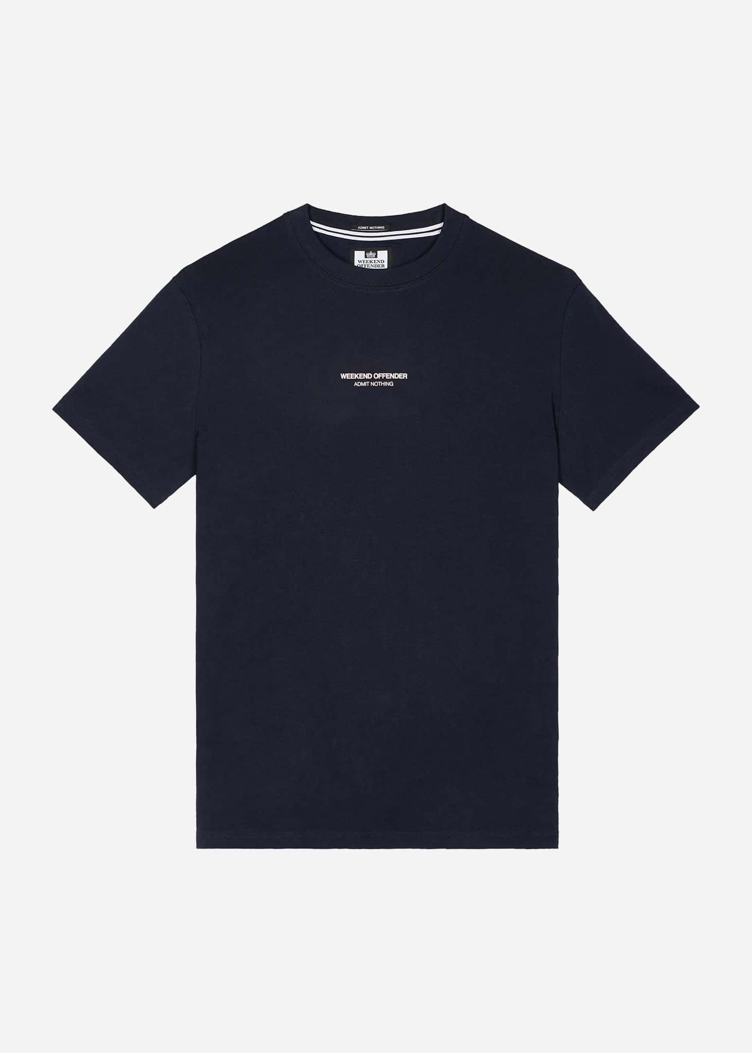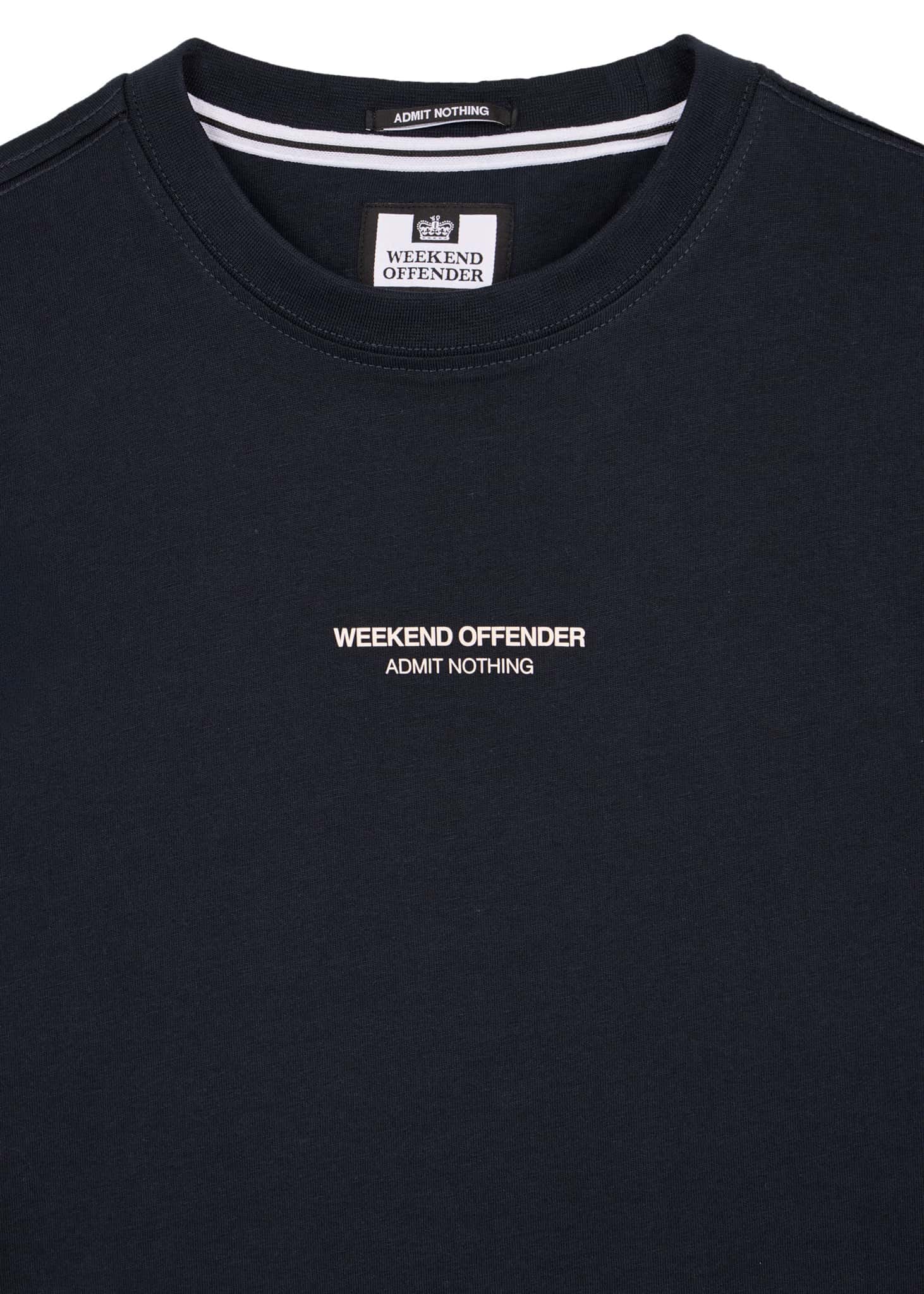 Signature T-shirt met de iconische 'Admit Nothing' slogan van Weekend Offender. Gemaakt van hoogwaardig katoen met een comfortabele pasvorm.