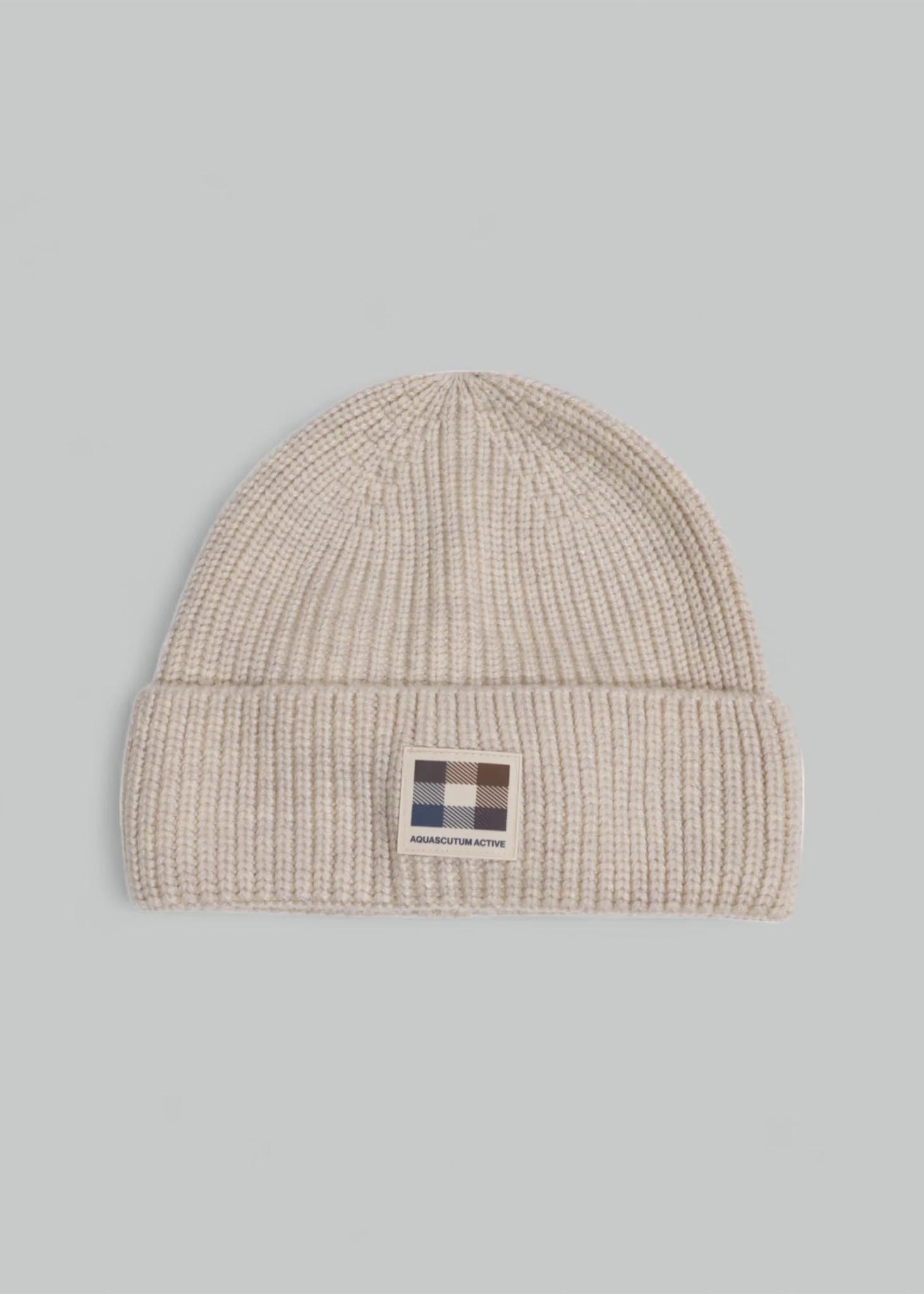 De Aquascutum Active Beanie combineert stijl met functionaliteit. Gemaakt van 80% wol en 20% Polytrimethylene vezels, biedt deze beanie optimale warmte en comfort. Het is afgewerkt met een silicone Club Check-patch voor een iconisch en tijdloos design.