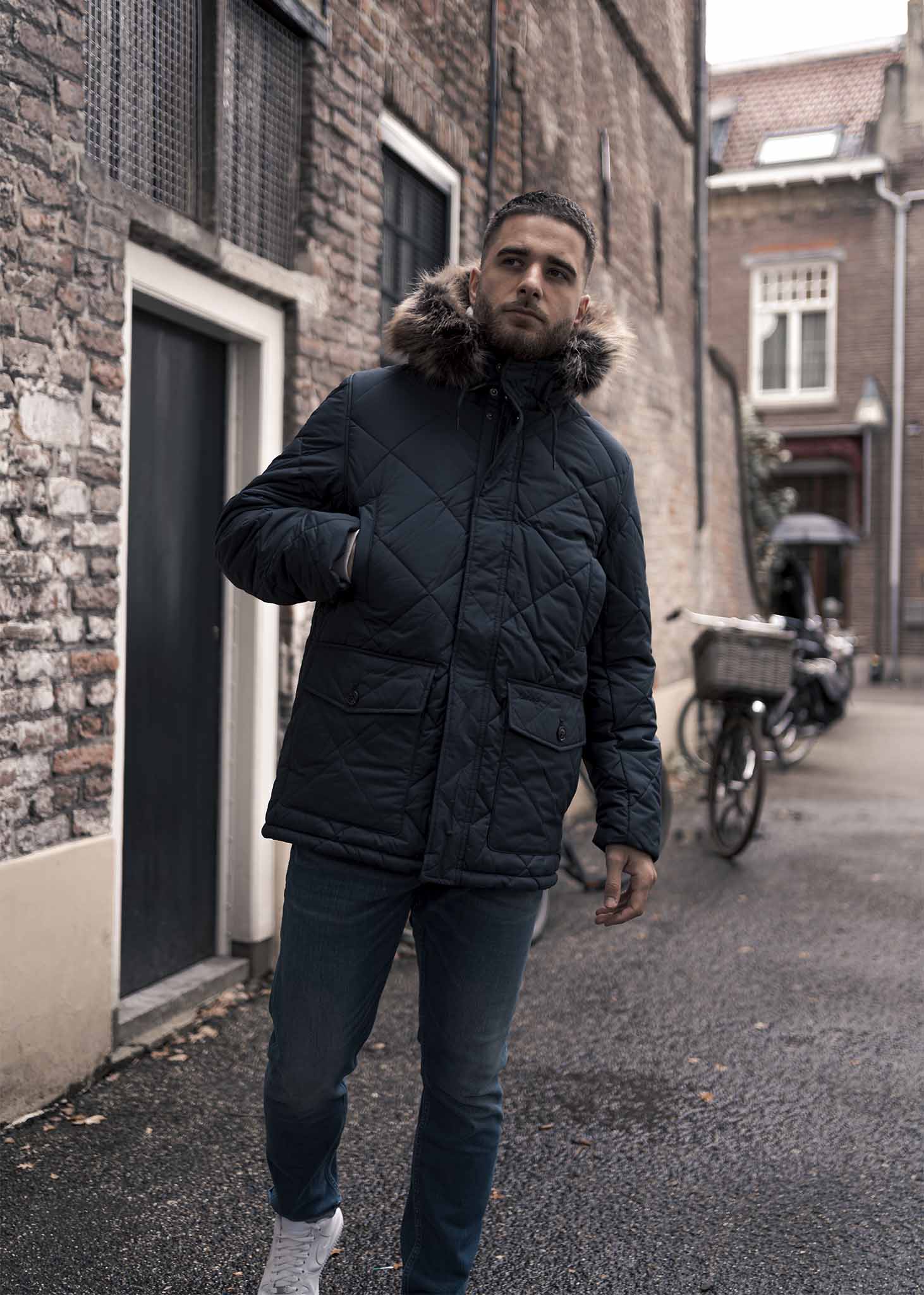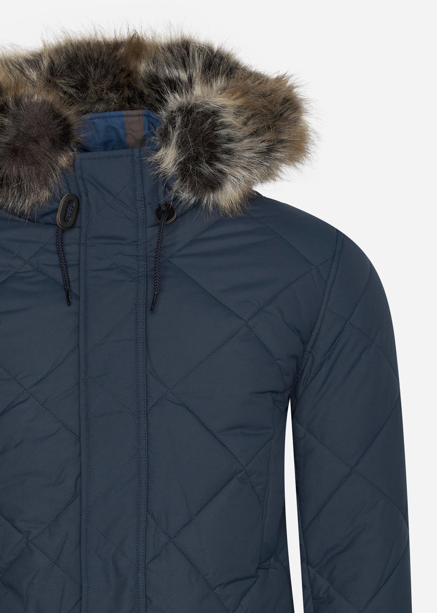 De gewatteerde Holburn Quilt jas van Barbour is stijlvol, warm en uniek. Tijdens de koudere maanden is deze winterjas dus perfect voor iedere modebewuste man. De jas heeft een opvallende capuchon die voorzien is van fijn, afneembaar imitatiebont. Verder is de jas voorzien van subtiele trekkoorden en twee handige zakken. Op de linkerzak is tevens het logo van Barbour geborduurd. Deze jas beschermt je op luxe wijze tegen alle weersomstandigheden.