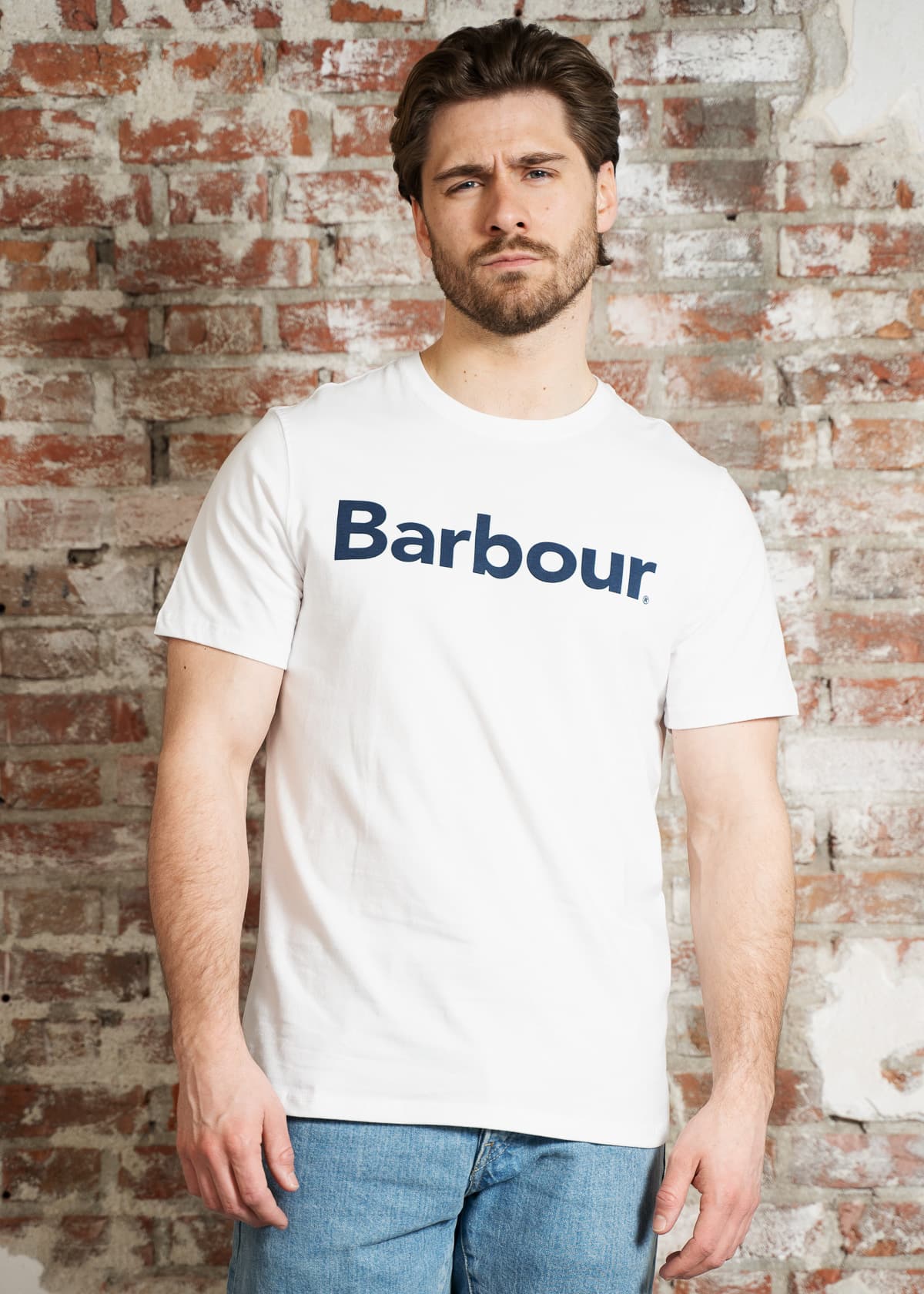 - Grote Barbour-logo op de borst