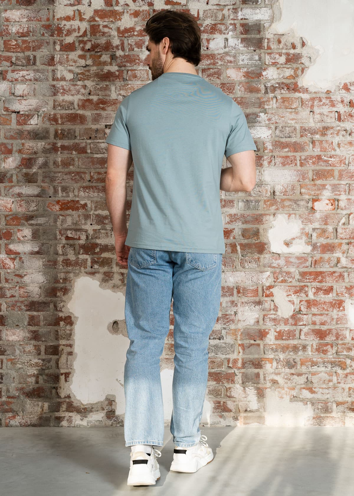 - Klassieke crew halslijn en korte mouwen