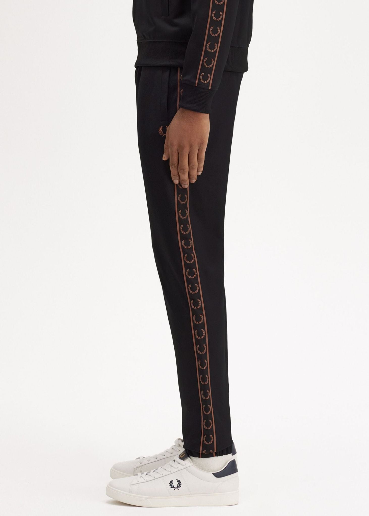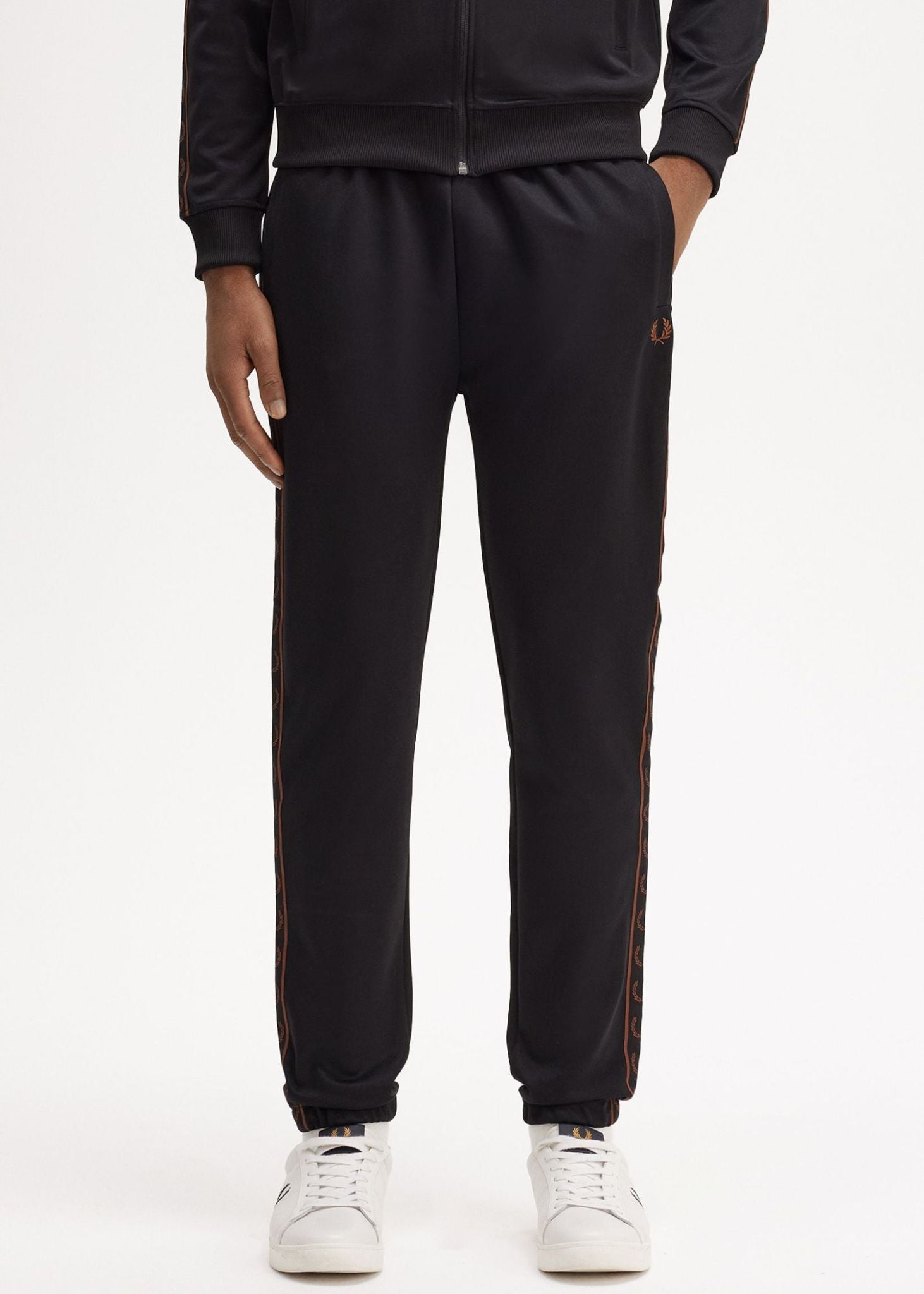Contrast tape track pant black whisky brown