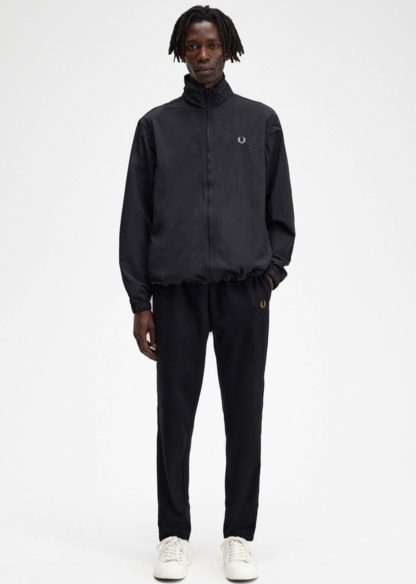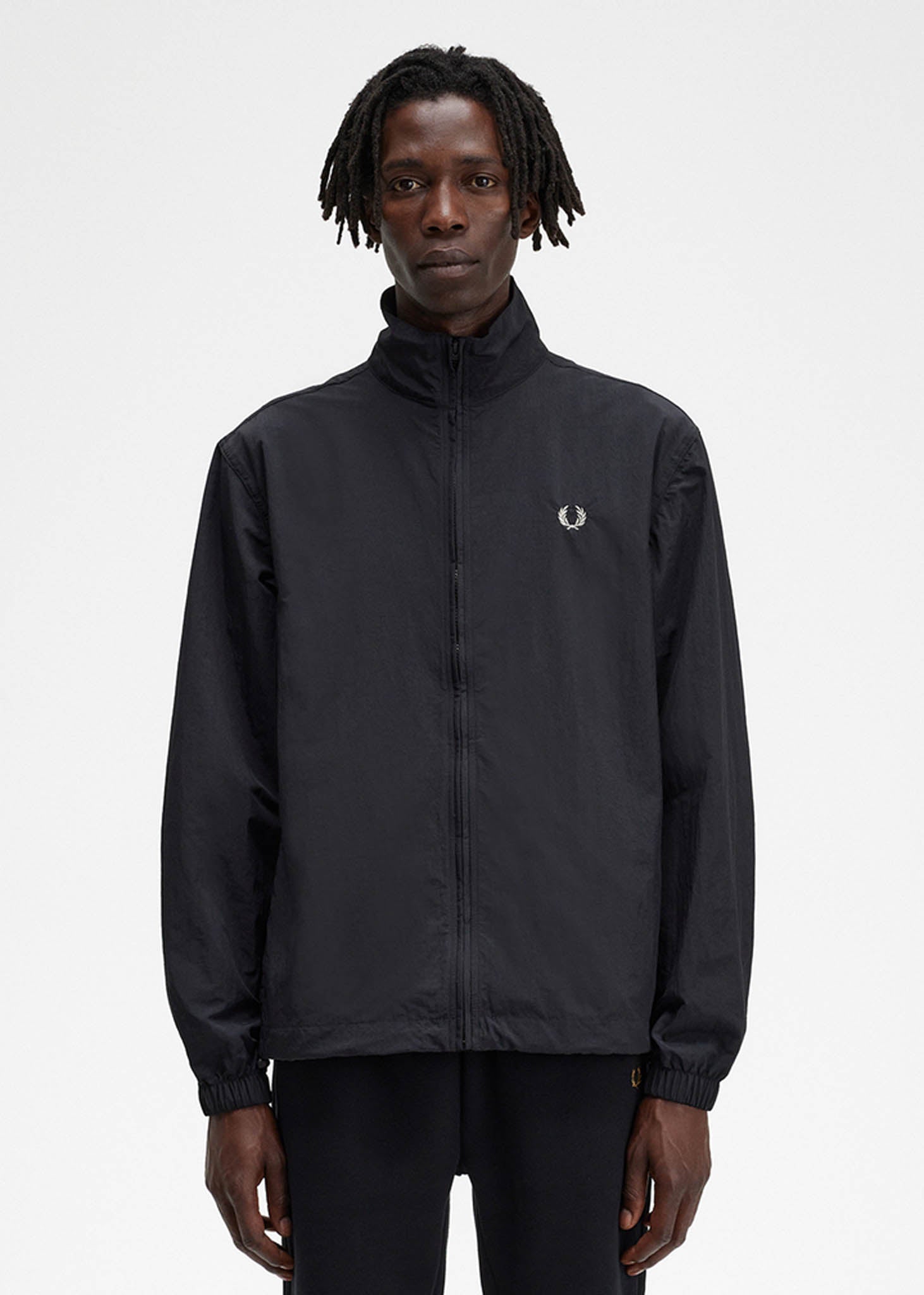 Het geweven track jacket van Fred Perry is een tijdloze klassieker. Het jack is zwart van kleur en heeft een strak geweven design. Het jack is voorzien van het kenmerkende Fred Perry-logo op de borst en heeft een ritssluiting en opstaande kraag. Het jack is veelzijdig en kan zowel casual als sportief gedragen worden.