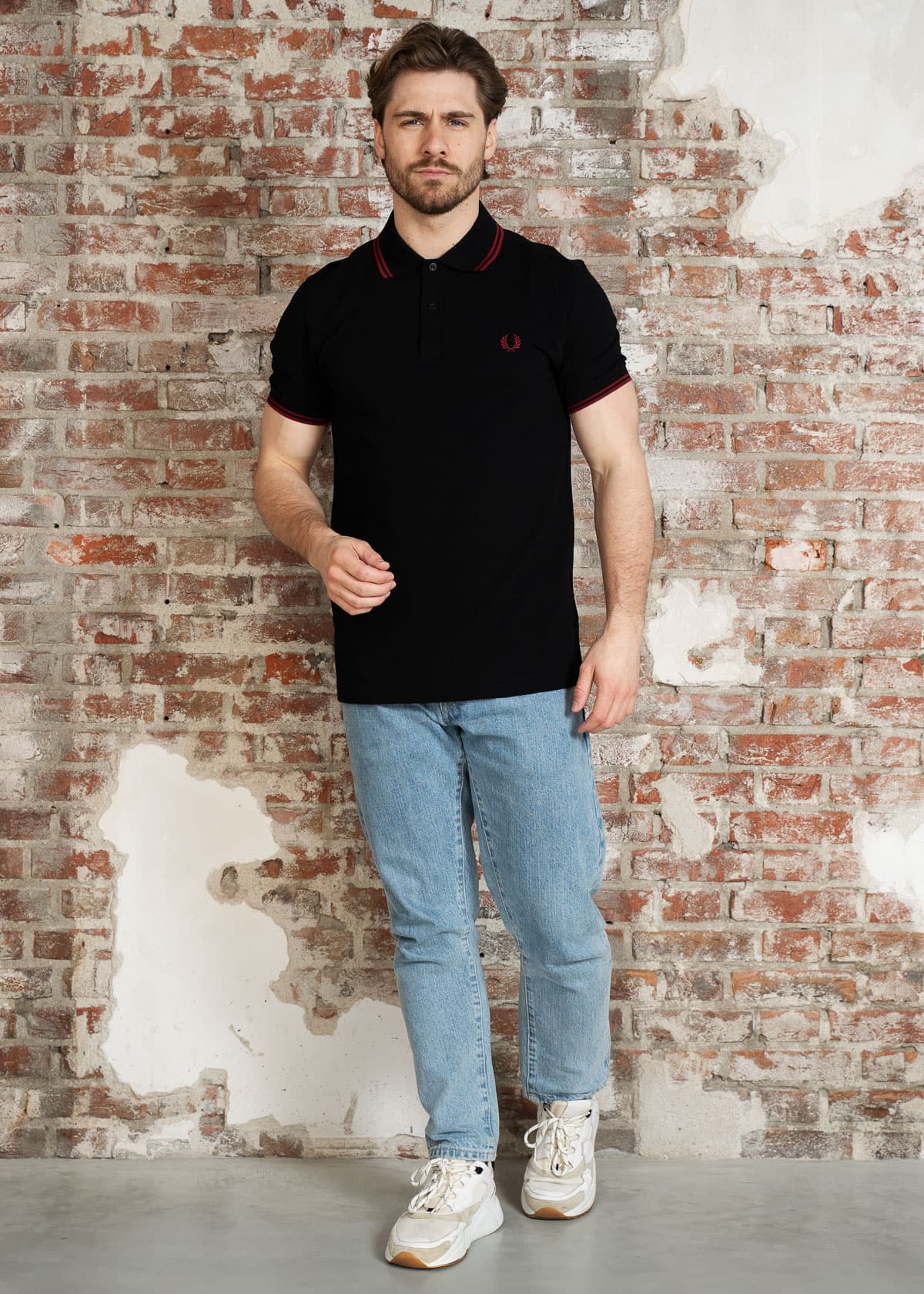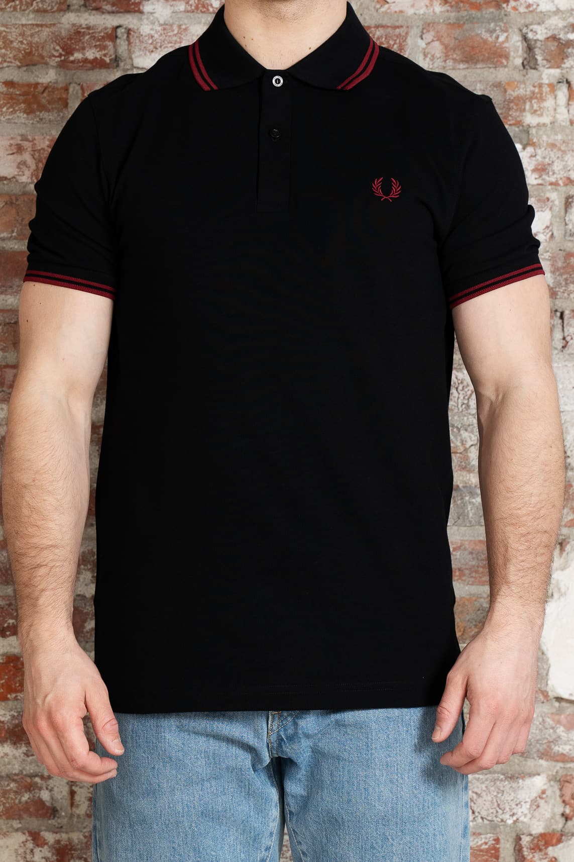 Twin tipped fred perry polo shirt- black burnt red