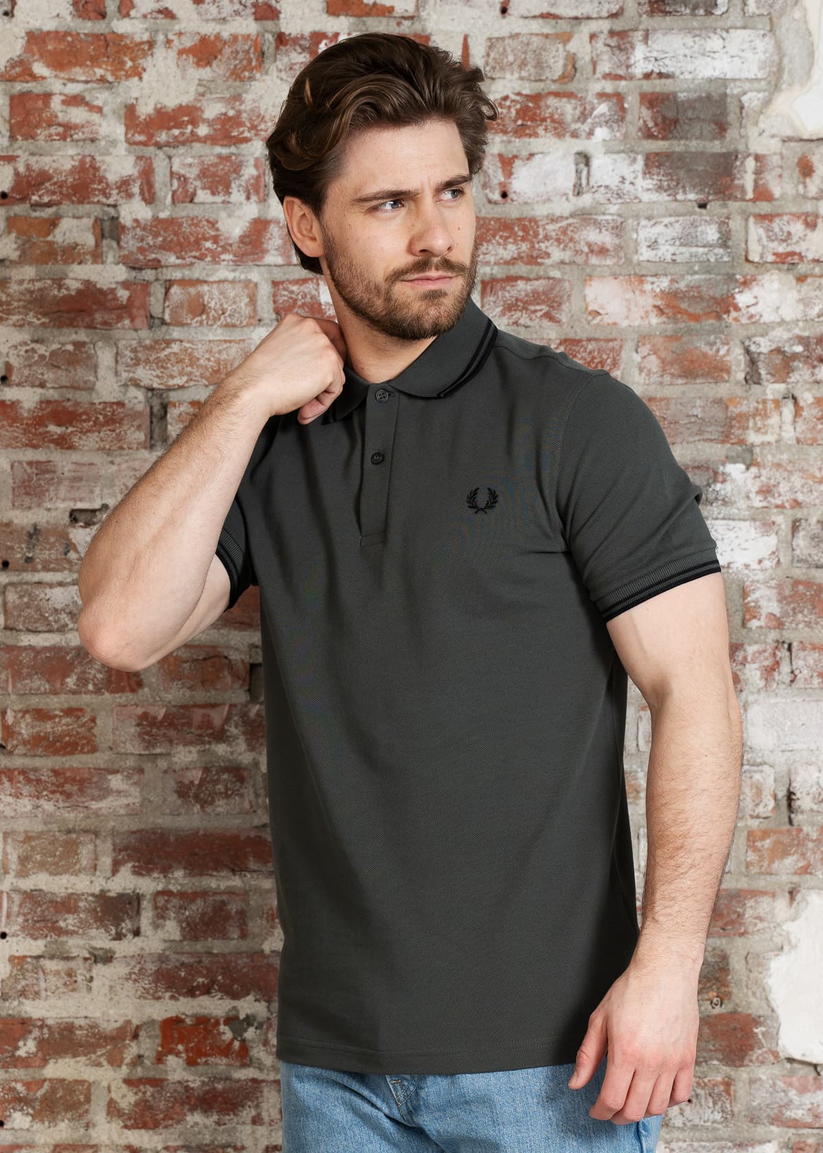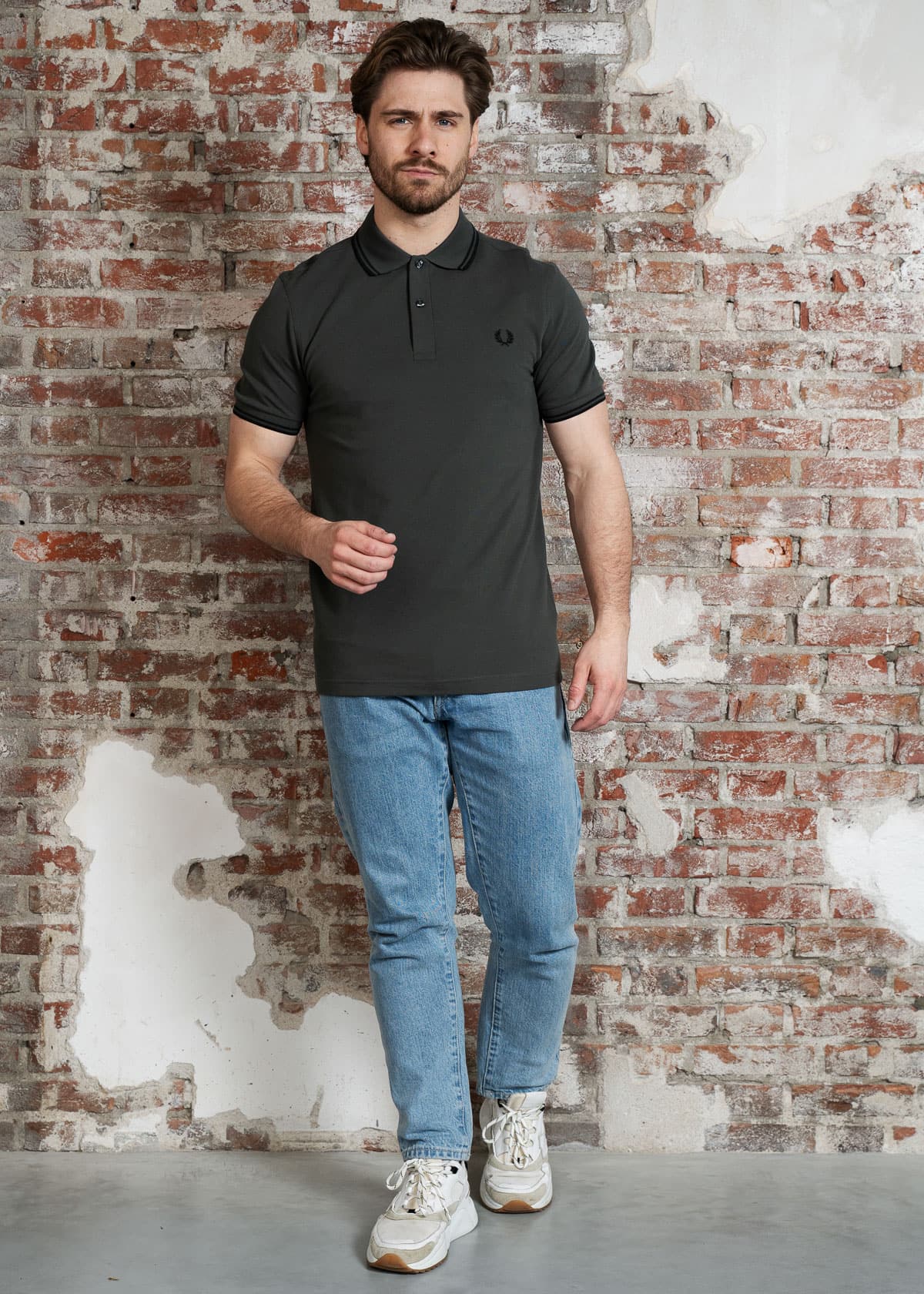 Twin tipped fred perry polo shirt- field green black