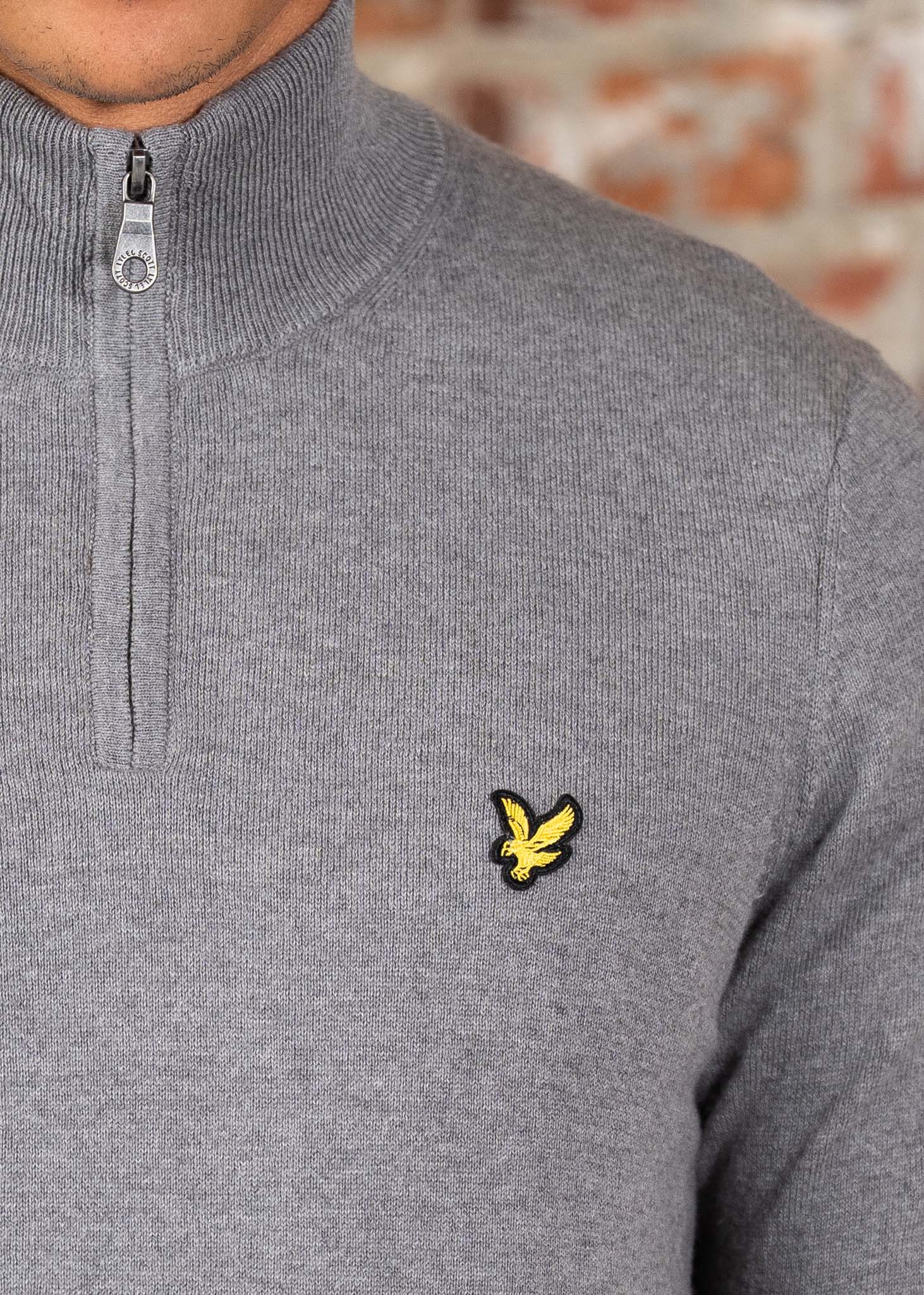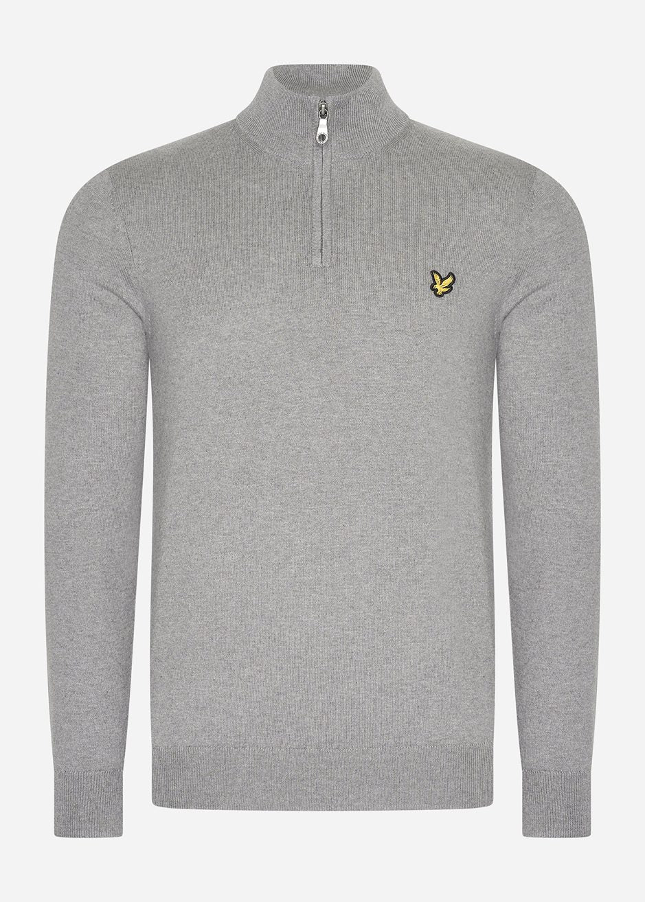 Cotton merino quarter zip jumper - mid grey marl