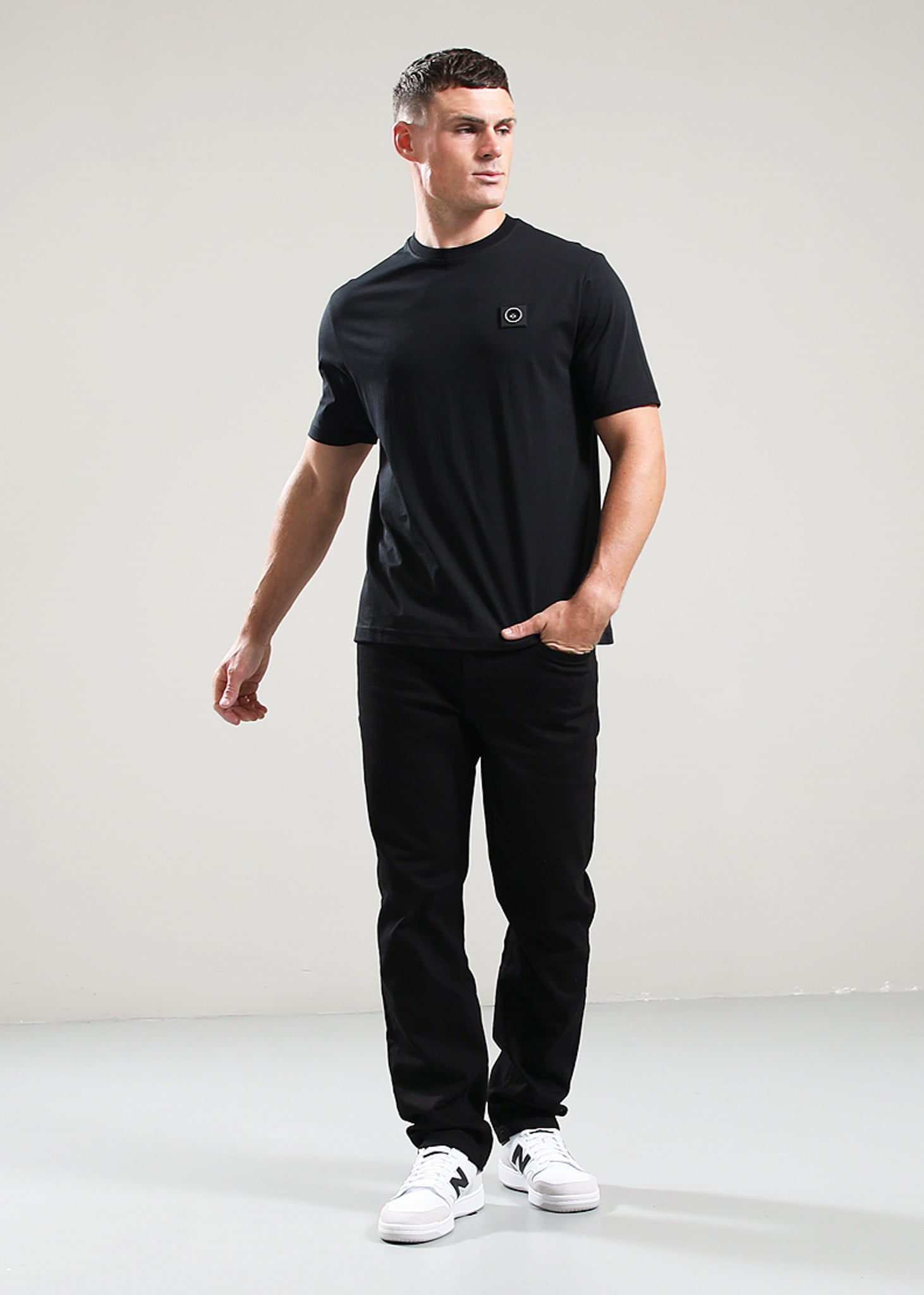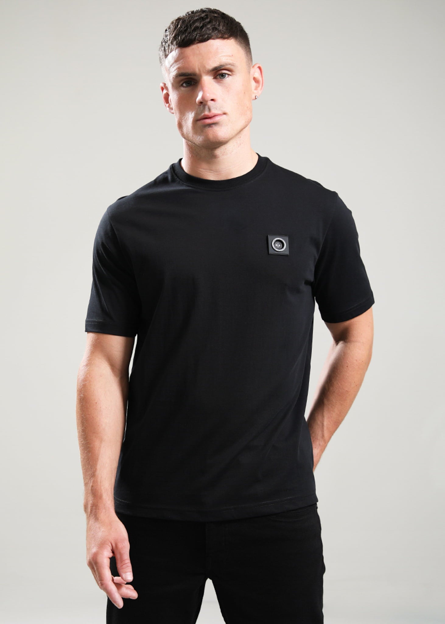 Basic t shirt met subtiele borstbranding. Zacht katoen en een cleane afwerking voor dagelijks gebruik.