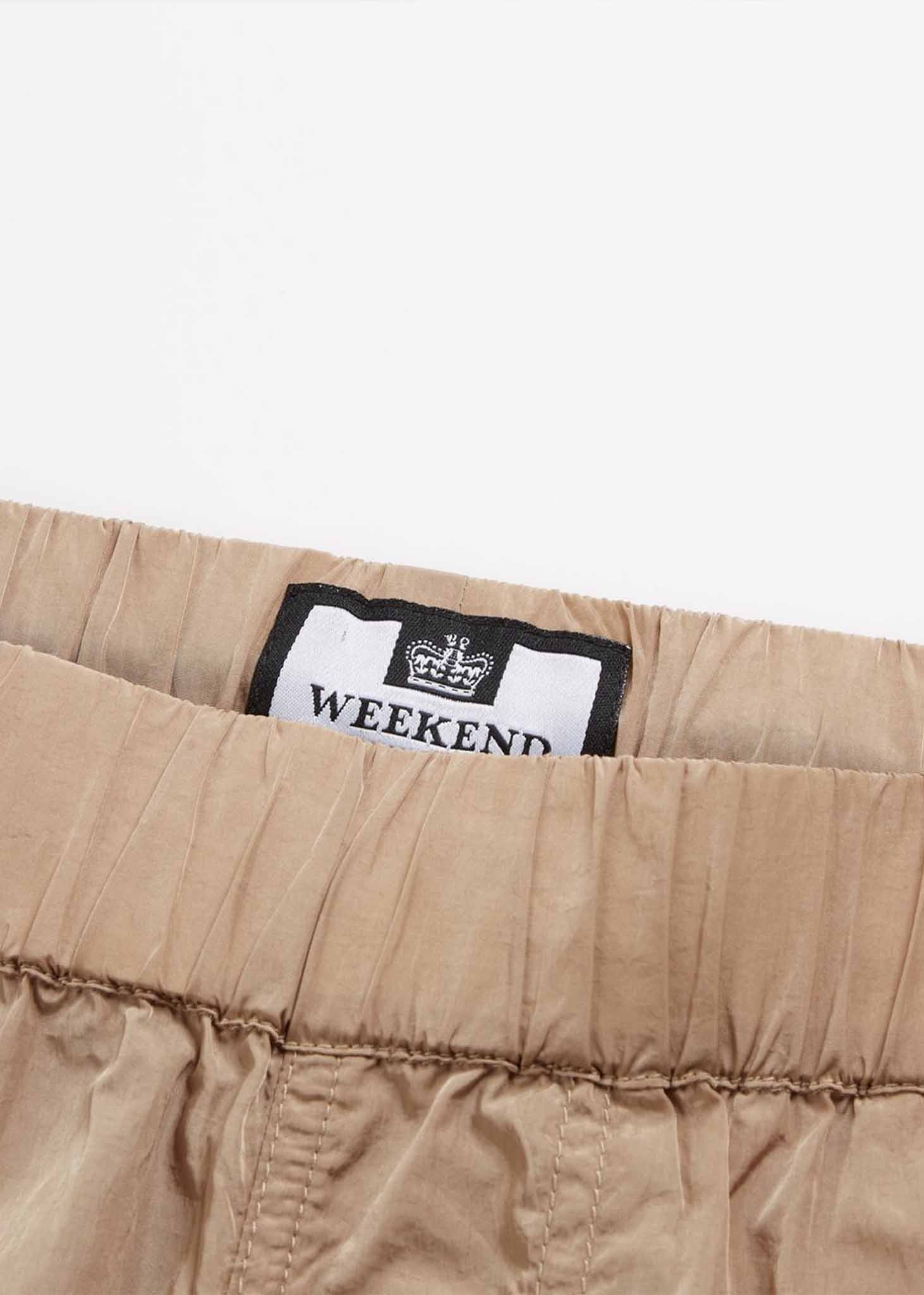 Deze broek van Weekend Offender is onmisbaar voor in jouw garderobe. De broek is voorzien van een elastische taille die met een trekkoord aan de binnenkant verstelbaar is. Verder heeft de broek zakken aan de zijkant en nog twee extra militaire zakken daaronder. Aan de linkerkant is het logo van Weekend Offender verwerkt. De manchetten zijn geribbeld waardoor deze extra stijlvol en comfortabel zijn.