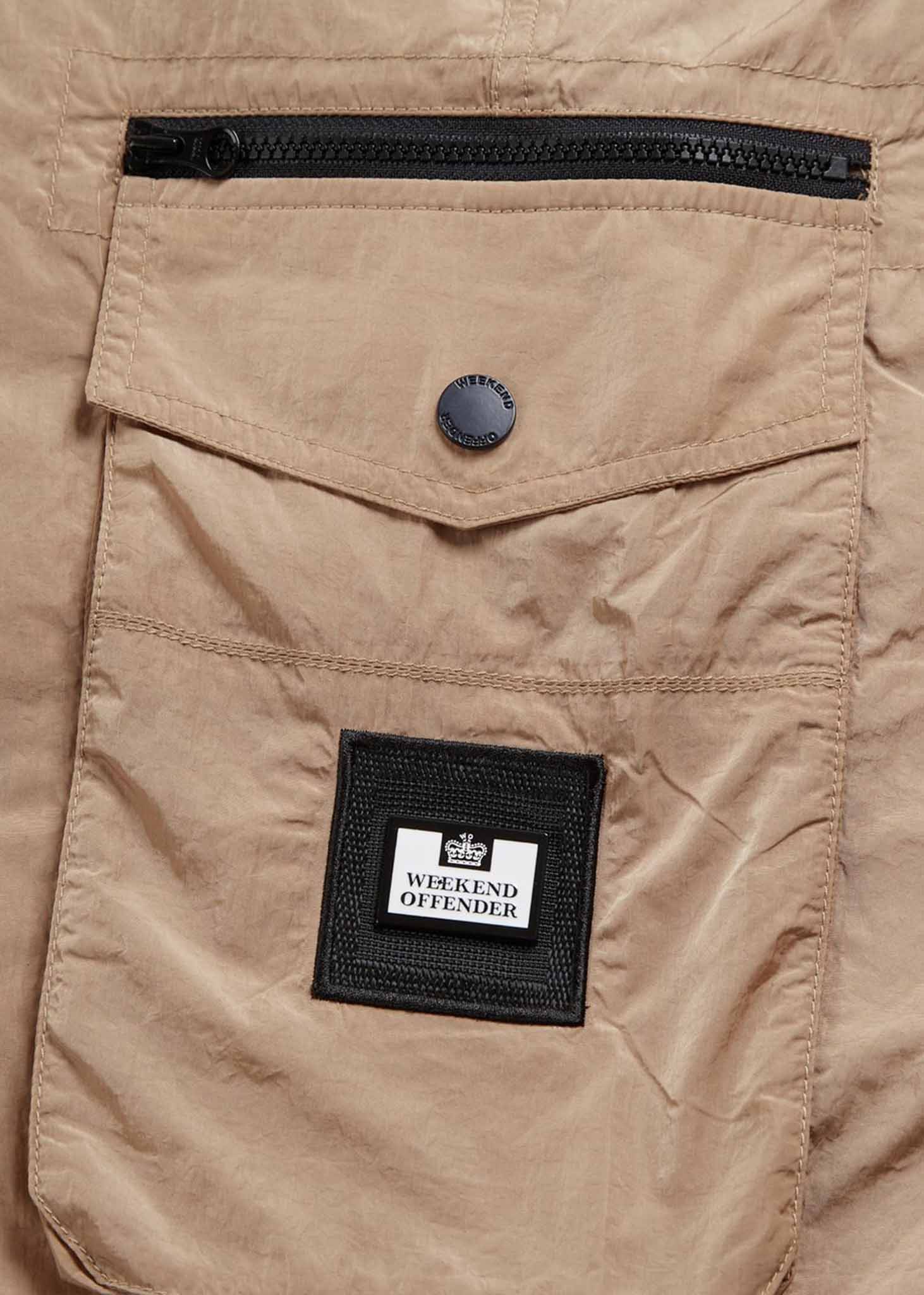 De broek is gemaakt van 100% nylon parachutestof. Dit zorgt voor extra stevigheid. Ook is de broek voorzien van een DWR-coating waardoor deze waterafstotend is.