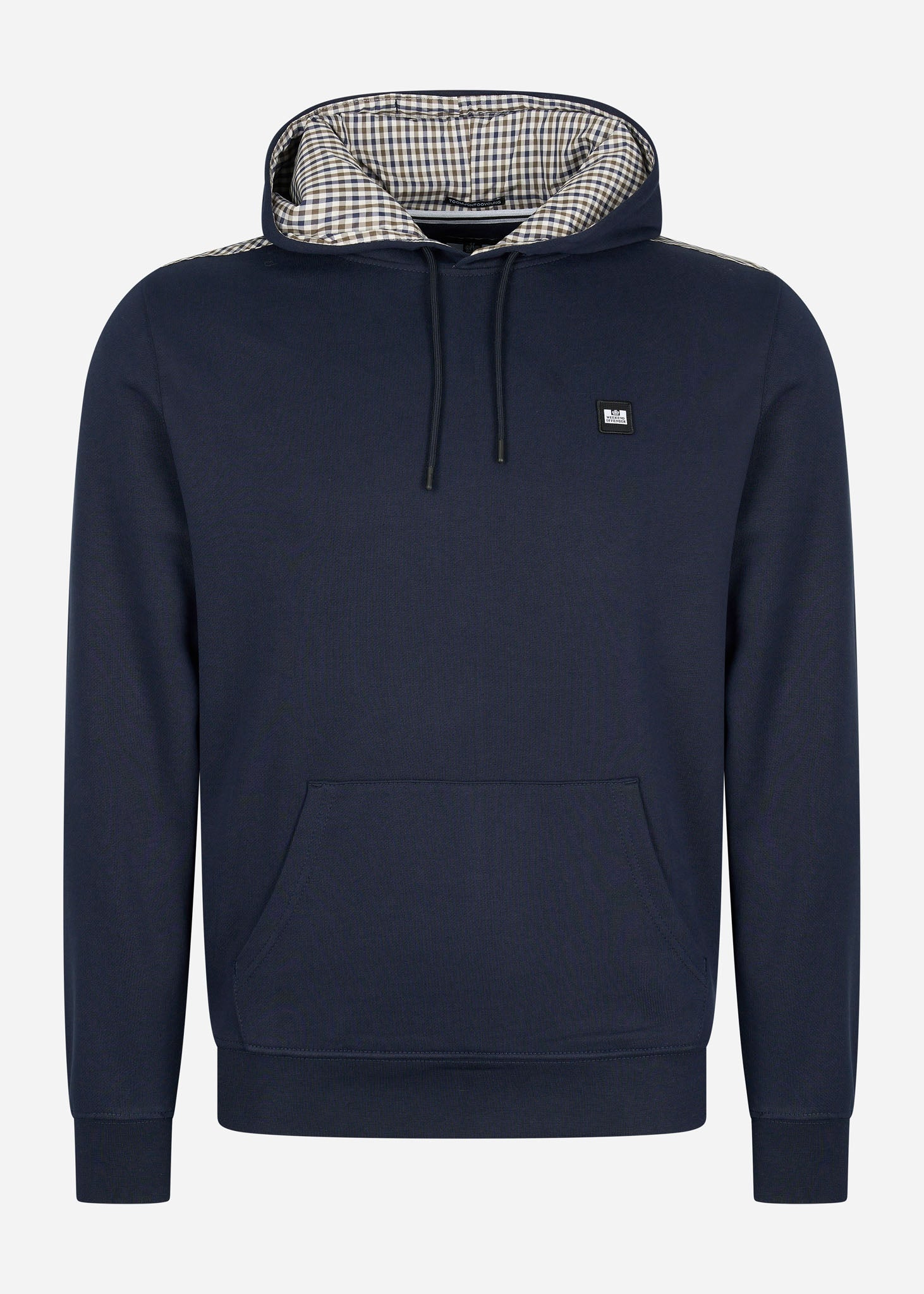 De Weekend Offender Fowler hoodie is gedetailleerd met een ruitenpatroon op de schouders en in de binnenkant van de capuchon. Verder is deze comfortabele hoodie voorzien van een kangoeroezak, trekkoorden bij de capuchon en het logo van Weekend Offender op de linkerborst.