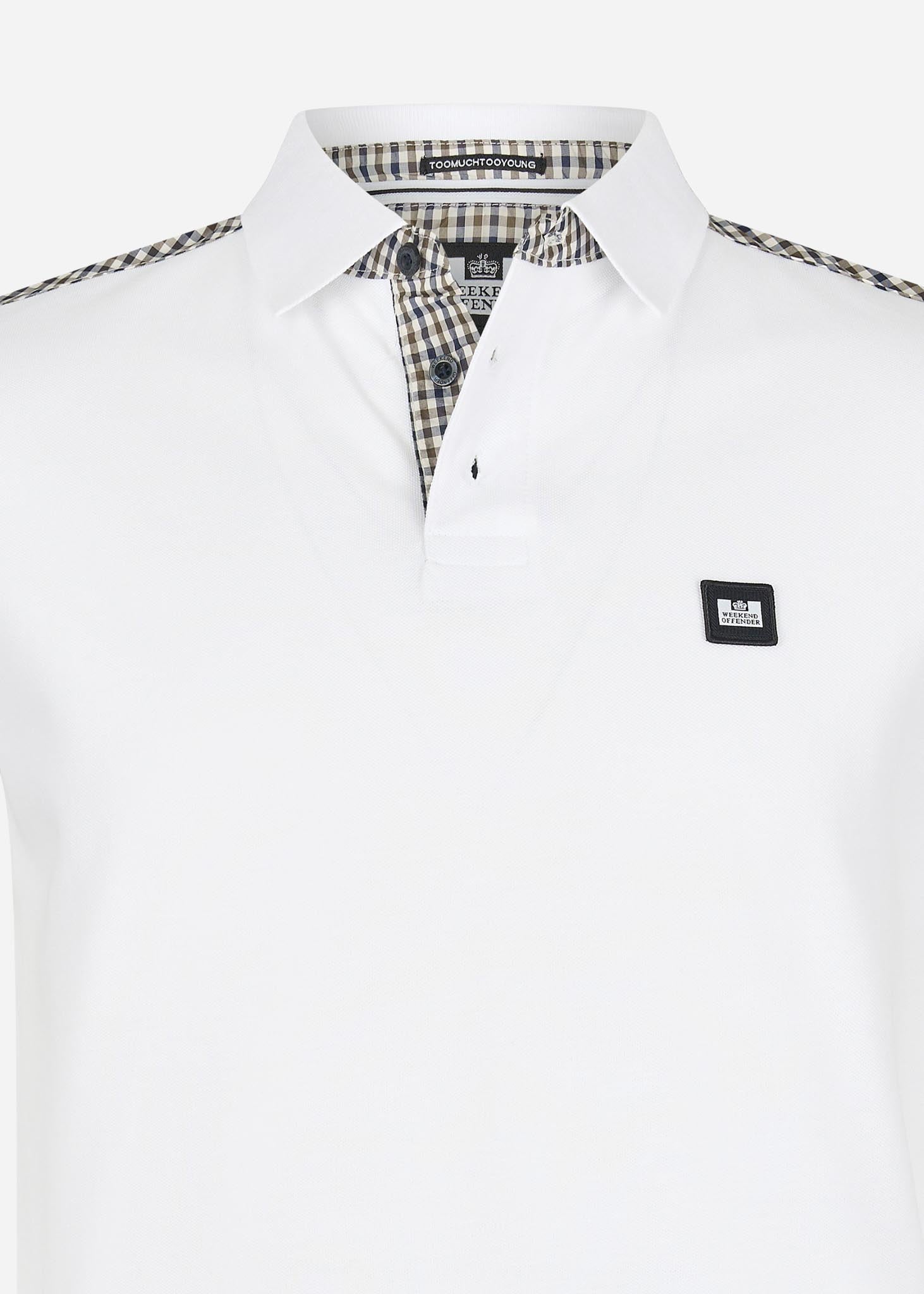 De Jacobs polo van Weekend Offender is voorzien van ruitdetails op de schouders, bij de sluiting en in de kraag. Daarnaast zijn de mouwboorden geribbeld en is op de linkerborst het logo van Weekend Offender weergegeven.
