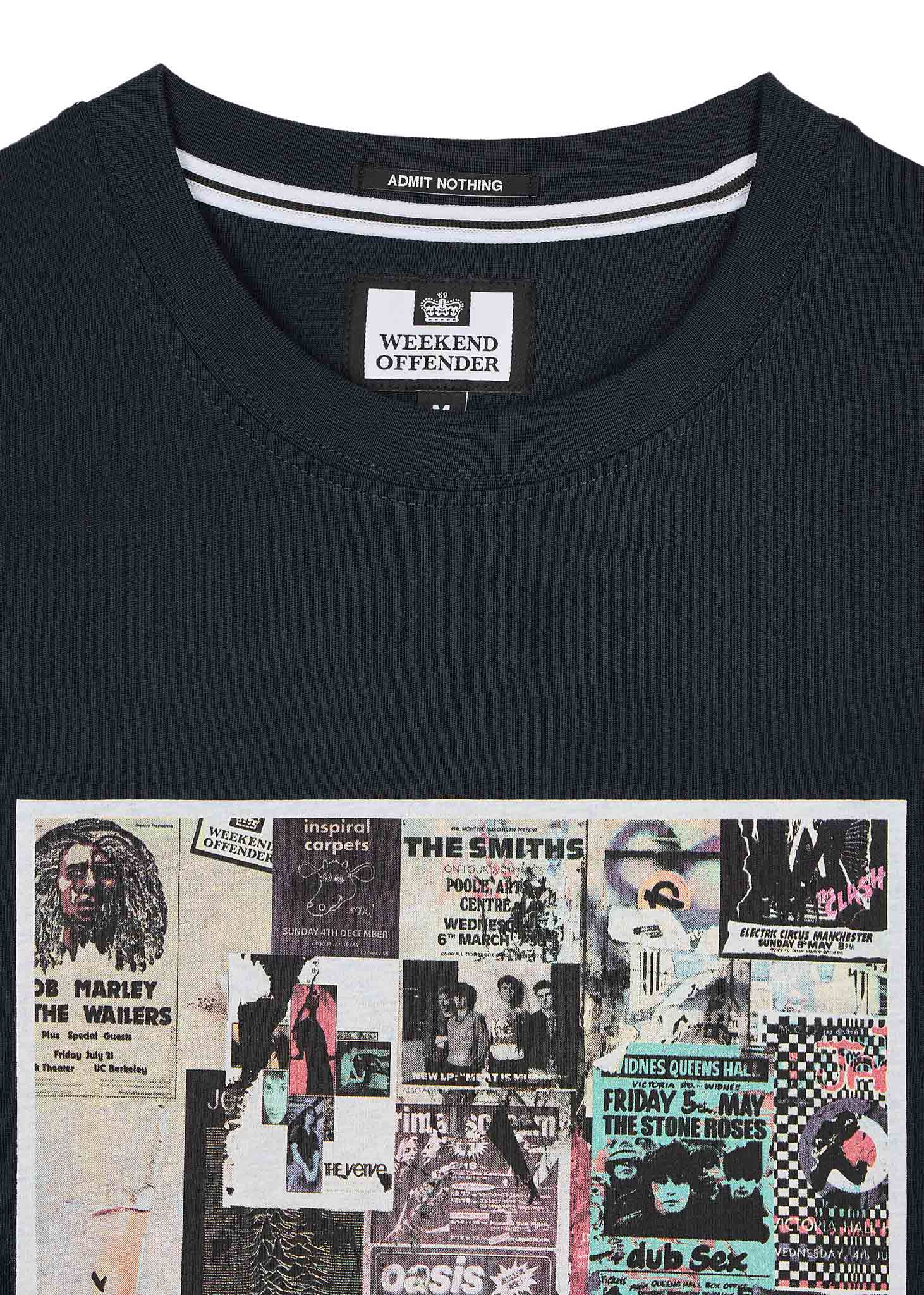 Het Weekend Offender Posters-T-shirt is een liefdesbrief aan de legendarische muziekscene. De voorkant van dit grafische T-shirt is bedekt met een collage van iconische concertposters, en zo beleef je de opzwepende energie van die onvergetelijke shows opnieuw. Dit T-shirt is gemaakt van comfortabel 100% katoenen single jersey en heeft een klassieke pasvorm met een geribbelde rondhals voor een tijdloze look. Of je nu zelf bij deze shows bent geweest of gewoon droomt van een plaatsje in de muziekgeschiedenis: dit unieke T-shirt is een must voor elke muziekliefhebber.