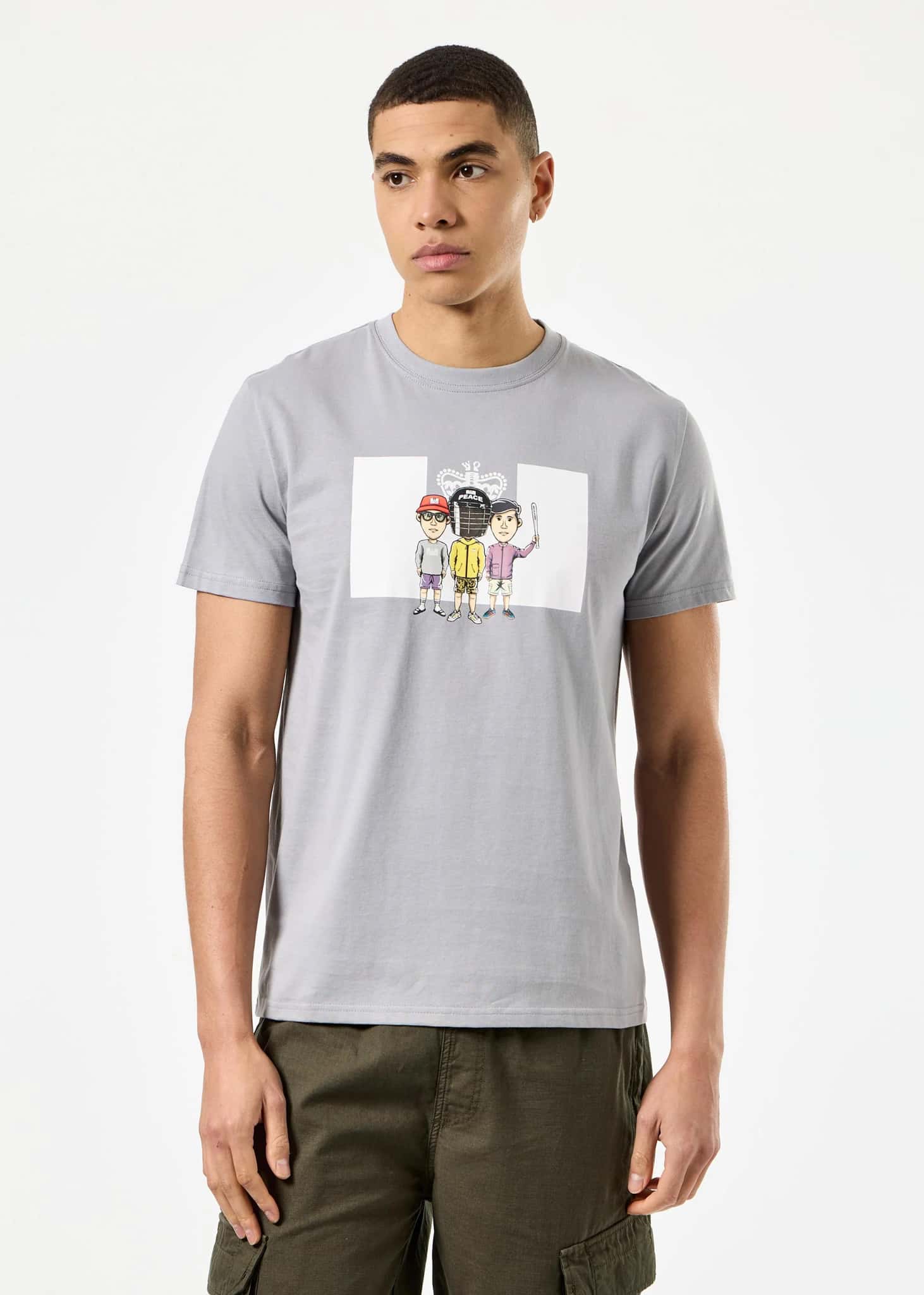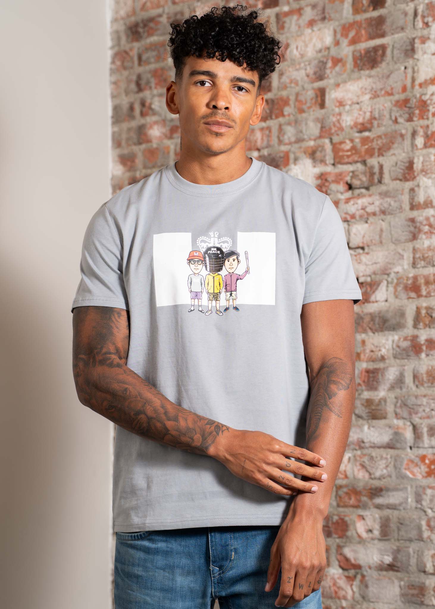 Graphic T-Shirt met drie offenders, gekleed voor het weekend.