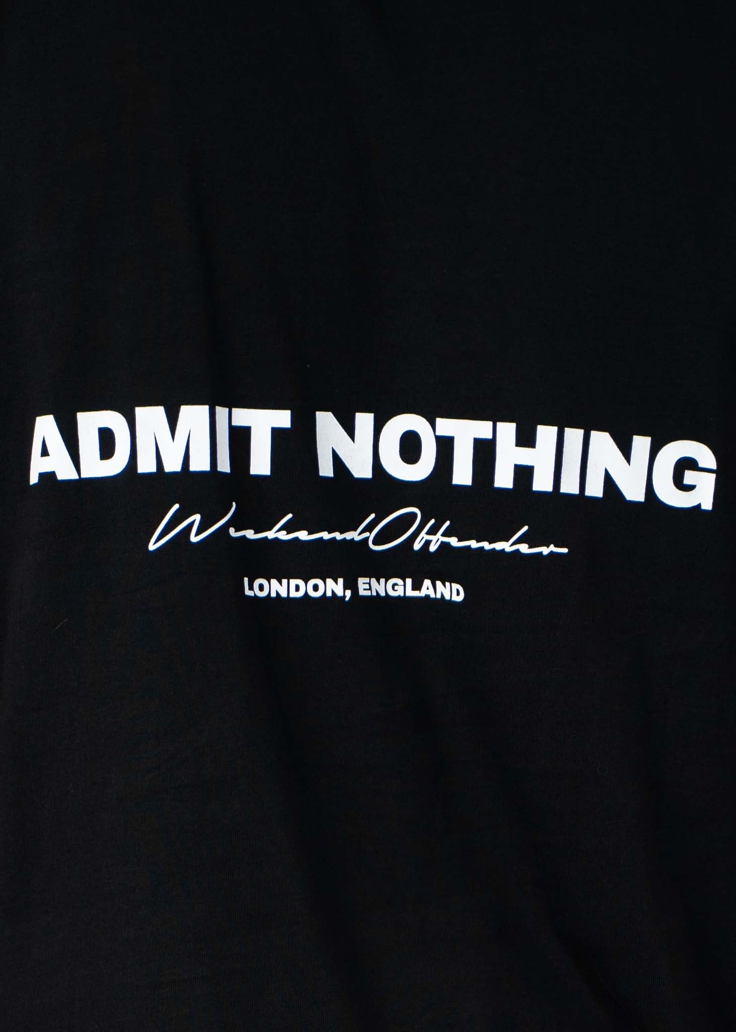 De ADMIN NOTHING Tee draait om de beruchte verwijzing naar de politie: ‘ADMIN NOTHING – geef niets toe’. Subtiele print op de voorkant en een krachtige backprint maken dit shirt een echt statement.