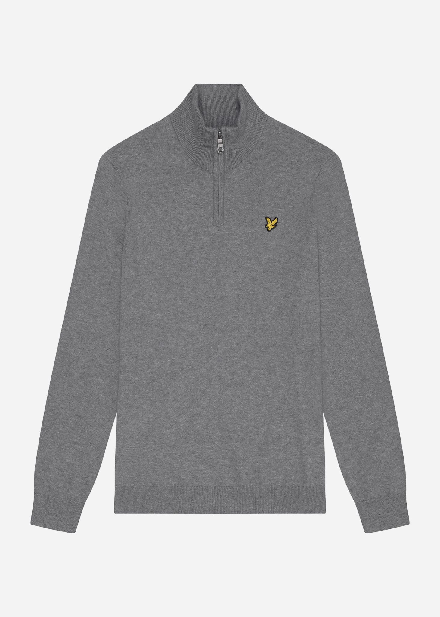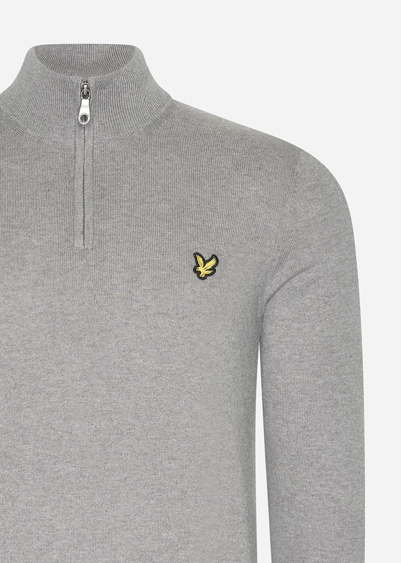 Cotton merino quarter zip jumper - mid grey marl