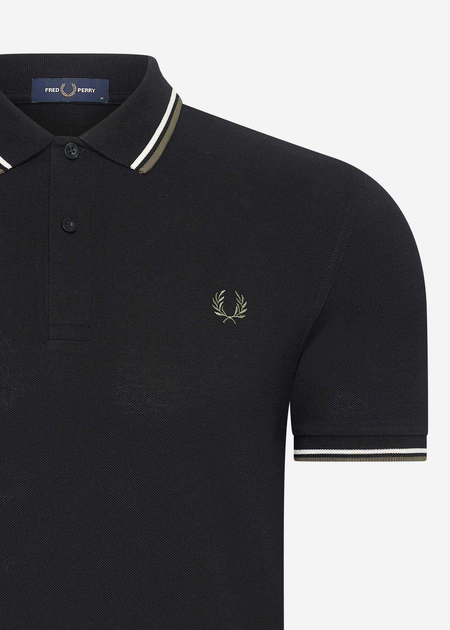 Twin tipped fred perry shirt - black ecru laurel wreath green